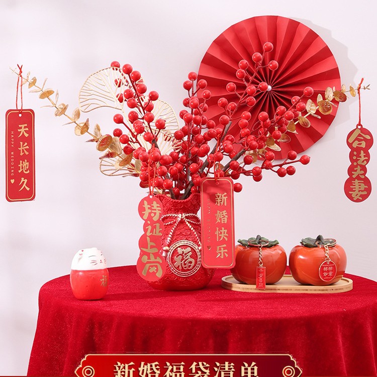 • 레진 레드 복주머니 축복 - 신혼 세트, 신혼 축복 카드 세트 무료 제공