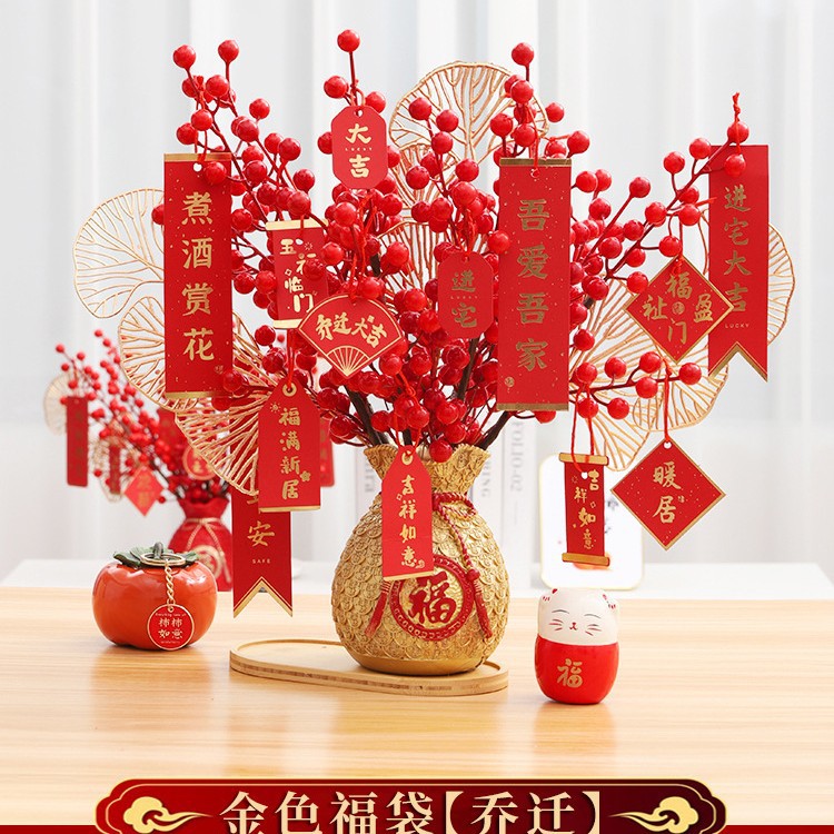 • 레진 레드 복주머니 축복 집들이 세트 집들이 축복 카드 세트가 함께 제공됩니다.