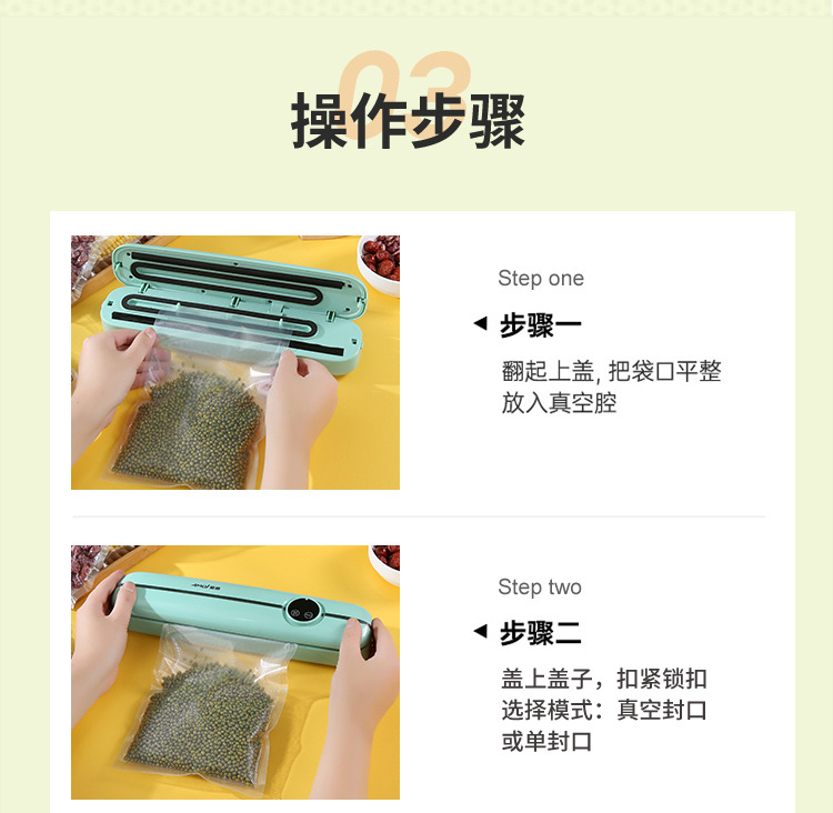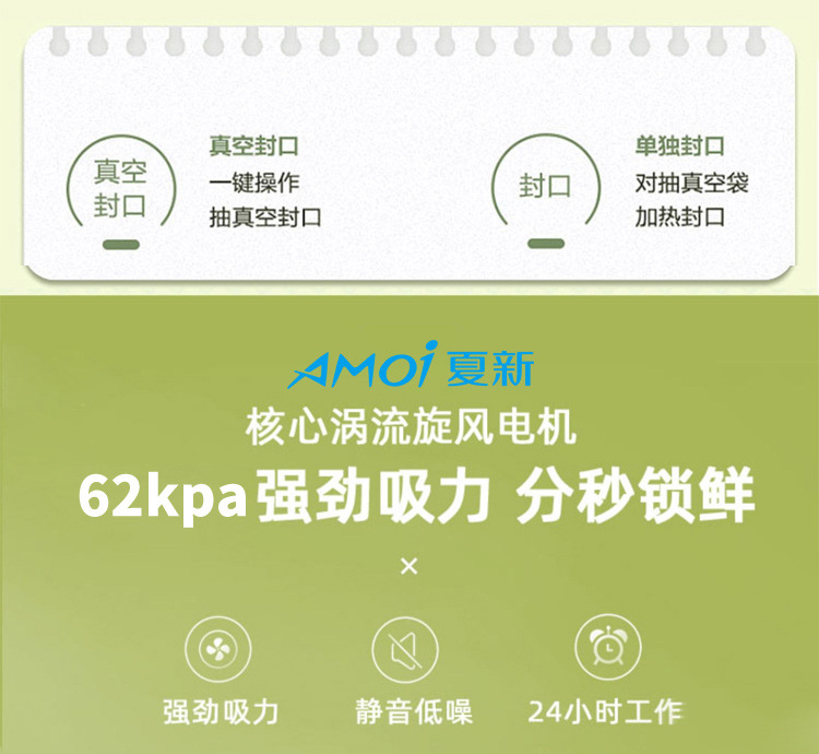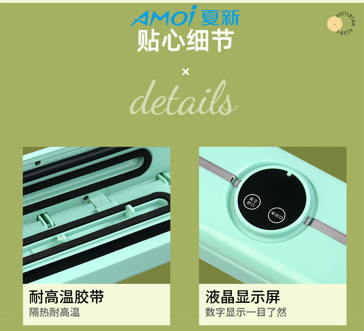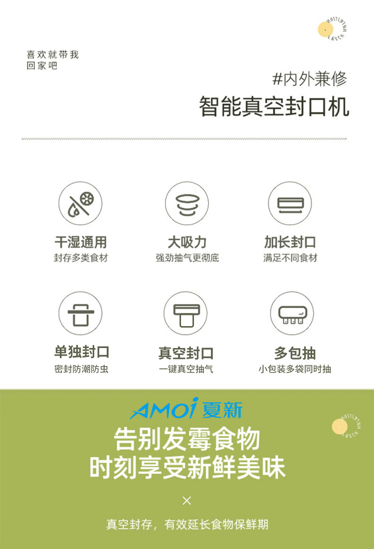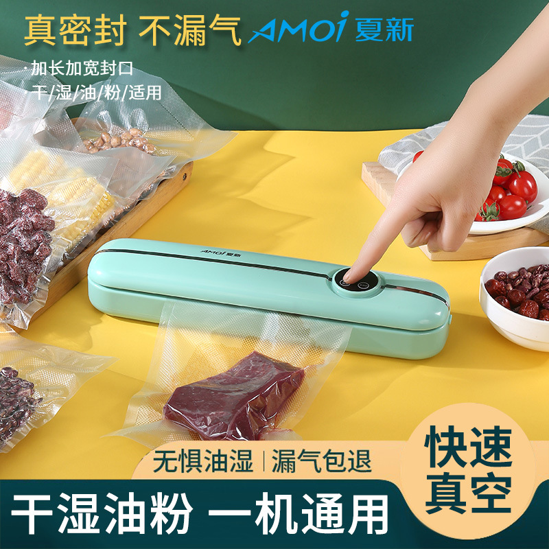 AMOi/Xia Xin 진공 밀봉 기계 가정용 식품 신선한 플라스틱 밀봉 기계 건조하고 젖은 이중 사용 자동 주방 인공물