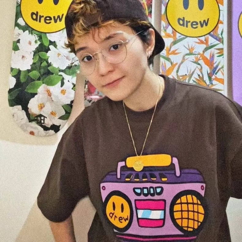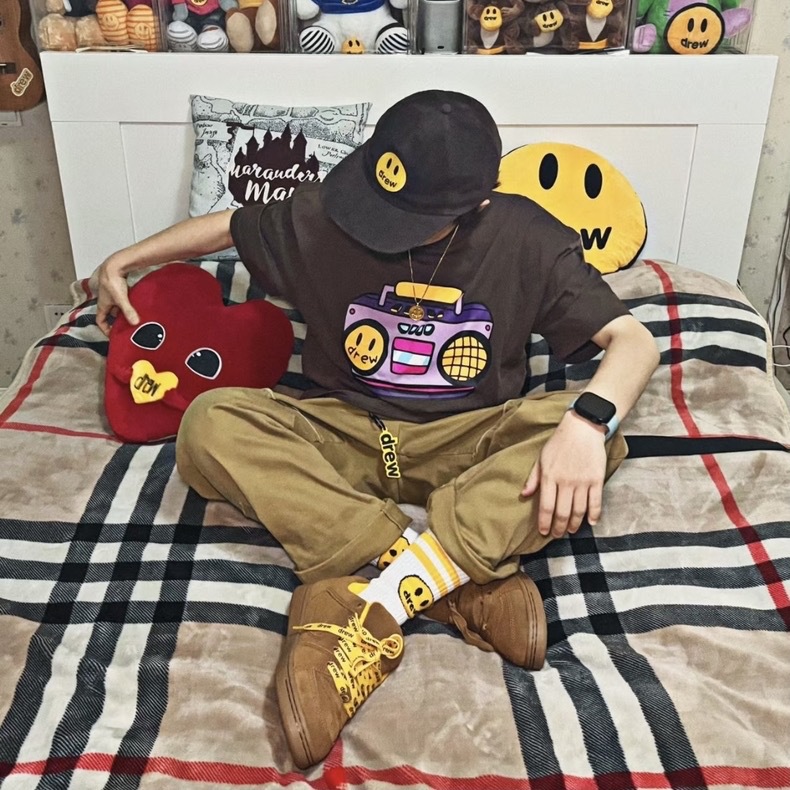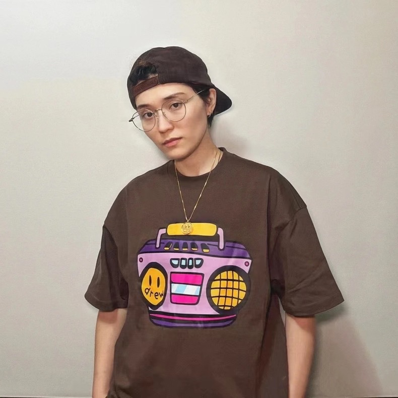 DREW 뉴 레트로 비버 스마일리 라디오 패션 브랜드 아메리칸 루즈 라운드 넥 반팔 티셔츠 남성 여름스토어 가기