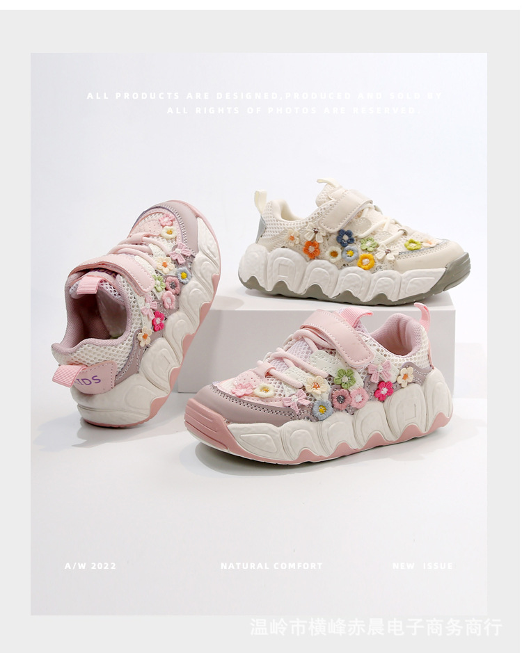 아동용 메쉬 패널 신발 봄, 가을 한국 스타일 여아 패션 빵 신발 중대형 어린이 학생 캐주얼 운동화