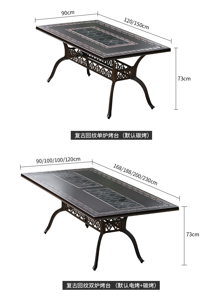 • 200*100cm 레트로 패턴 더블 오븐 바베큐 테이블