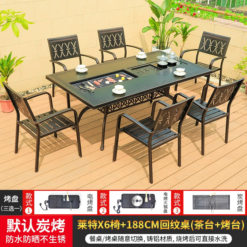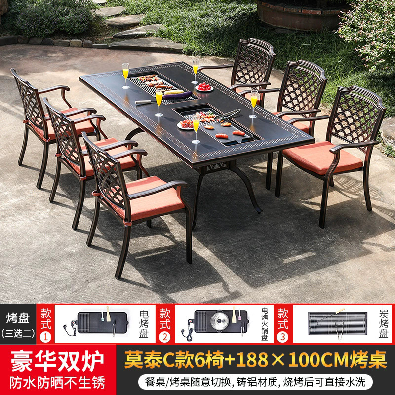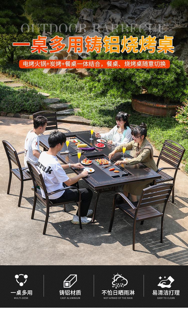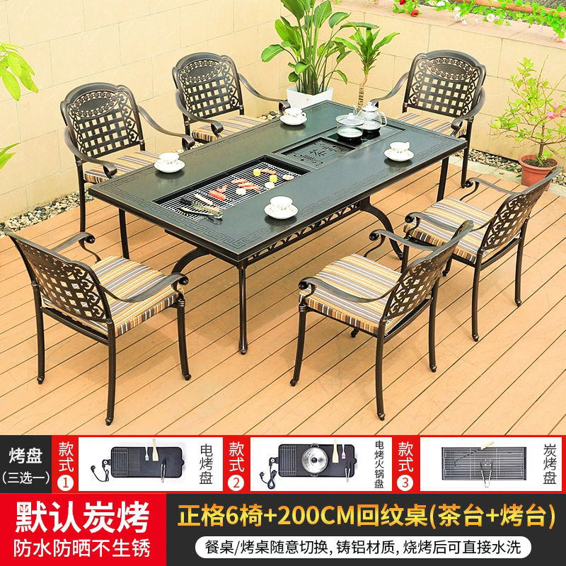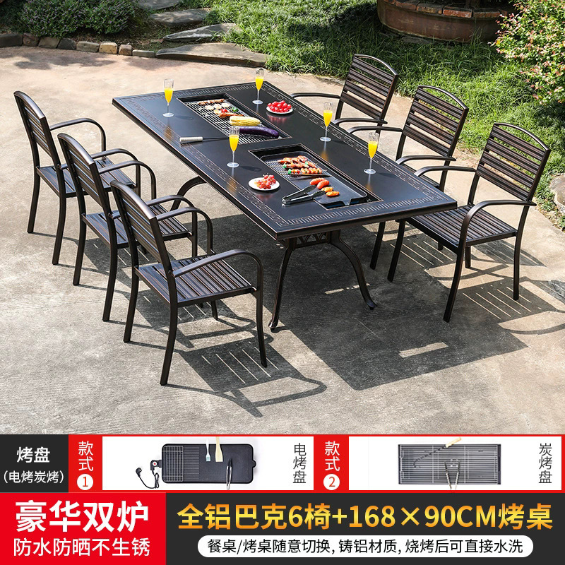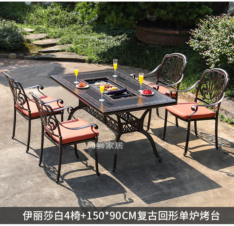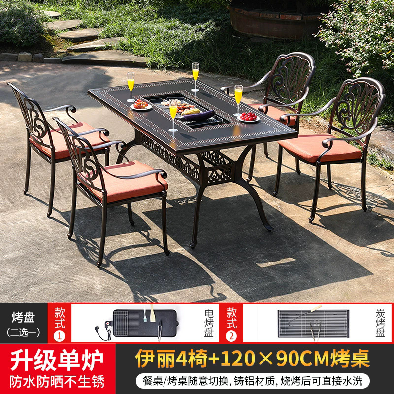 야외 레저 바베큐 테이블 및 의자 전기 그릴 숯 그릴 가정용 코트야드 발코니 정원 빌라 식탁 및 의자 주조 알루미늄 테이블 및 의자스토어 가기