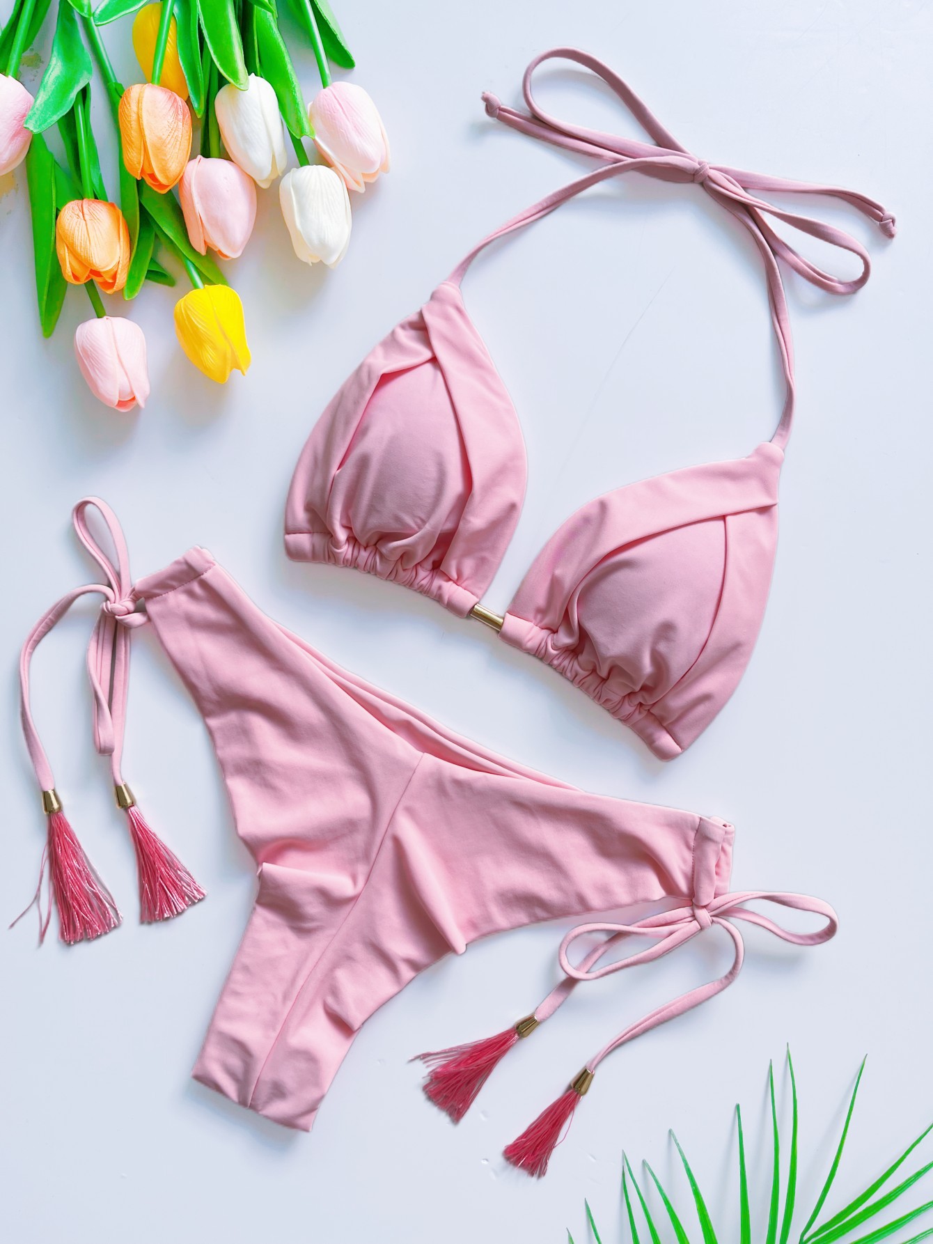 2025 유럽과 미국의 새로운 술 솔리드 컬러 비키니 세트 수영복 비치 섹시한 숙녀 수영복