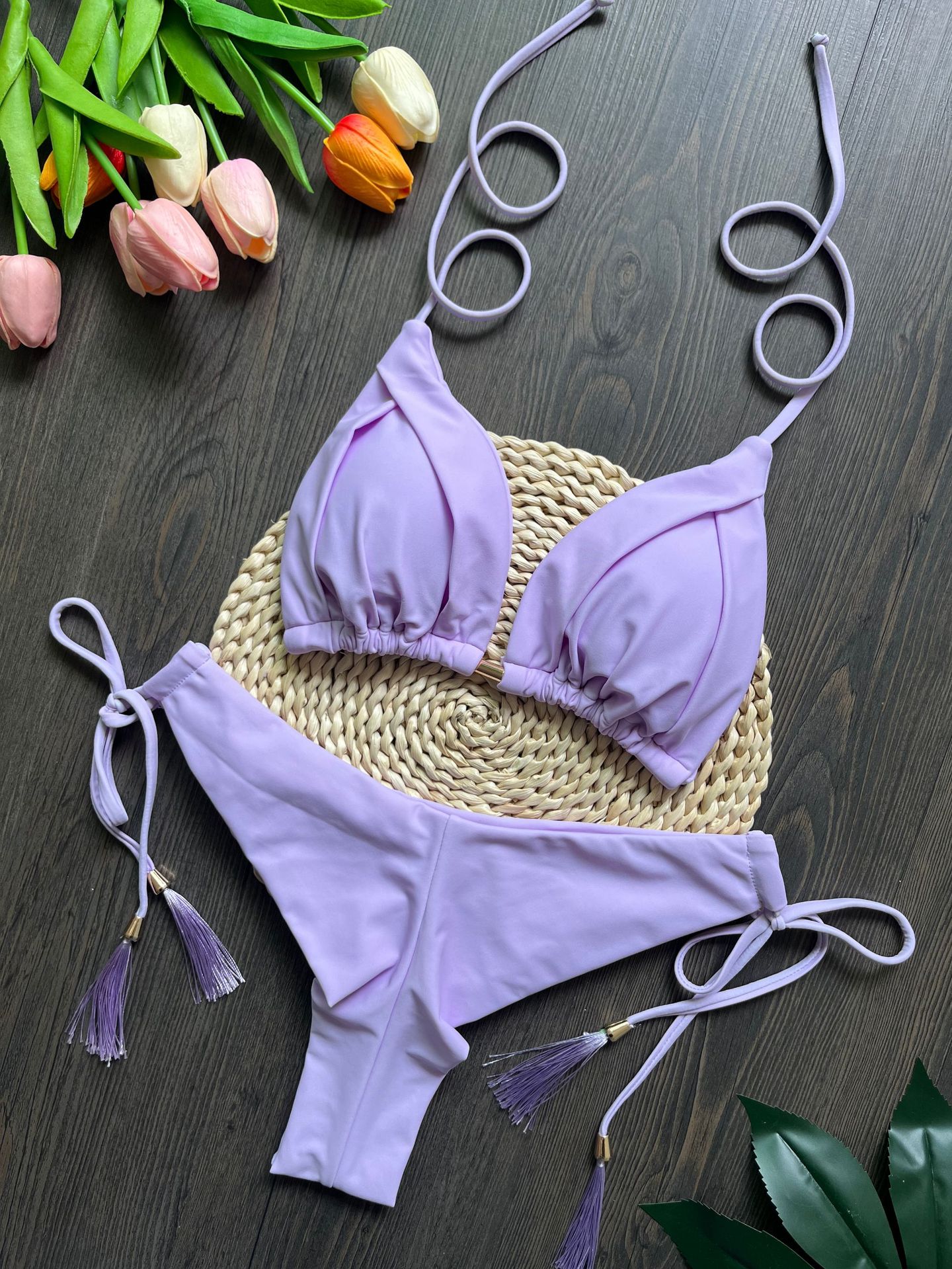 2025 유럽과 미국의 새로운 술 솔리드 컬러 비키니 세트 수영복 비치 섹시한 숙녀 수영복스토어 가기