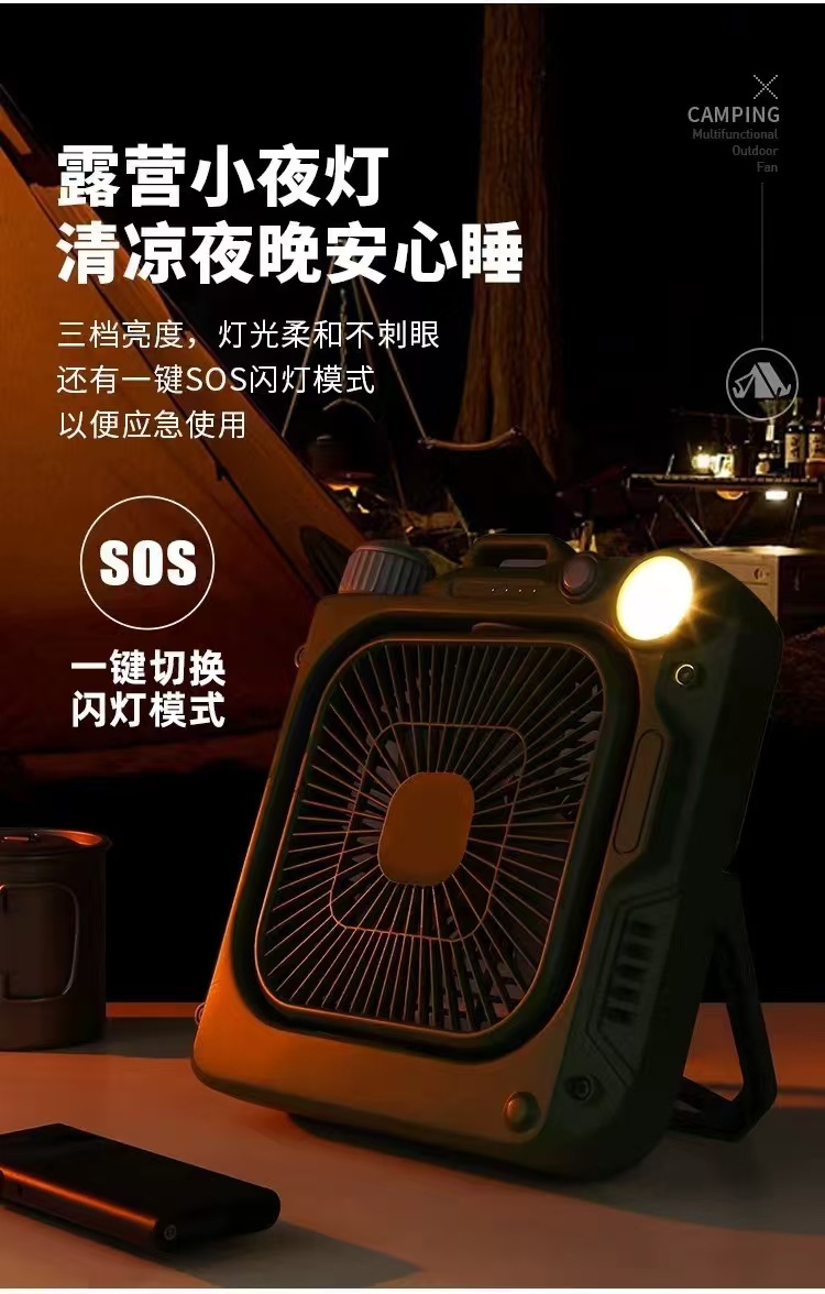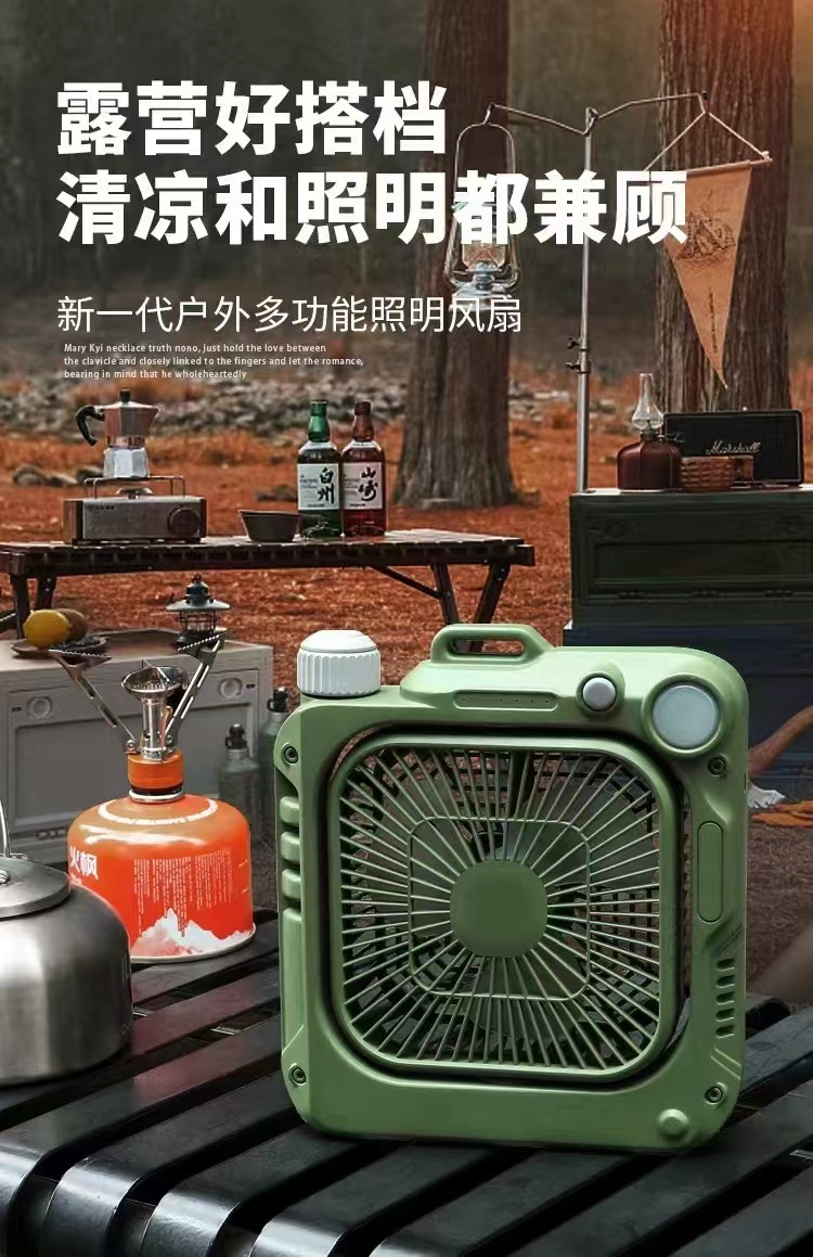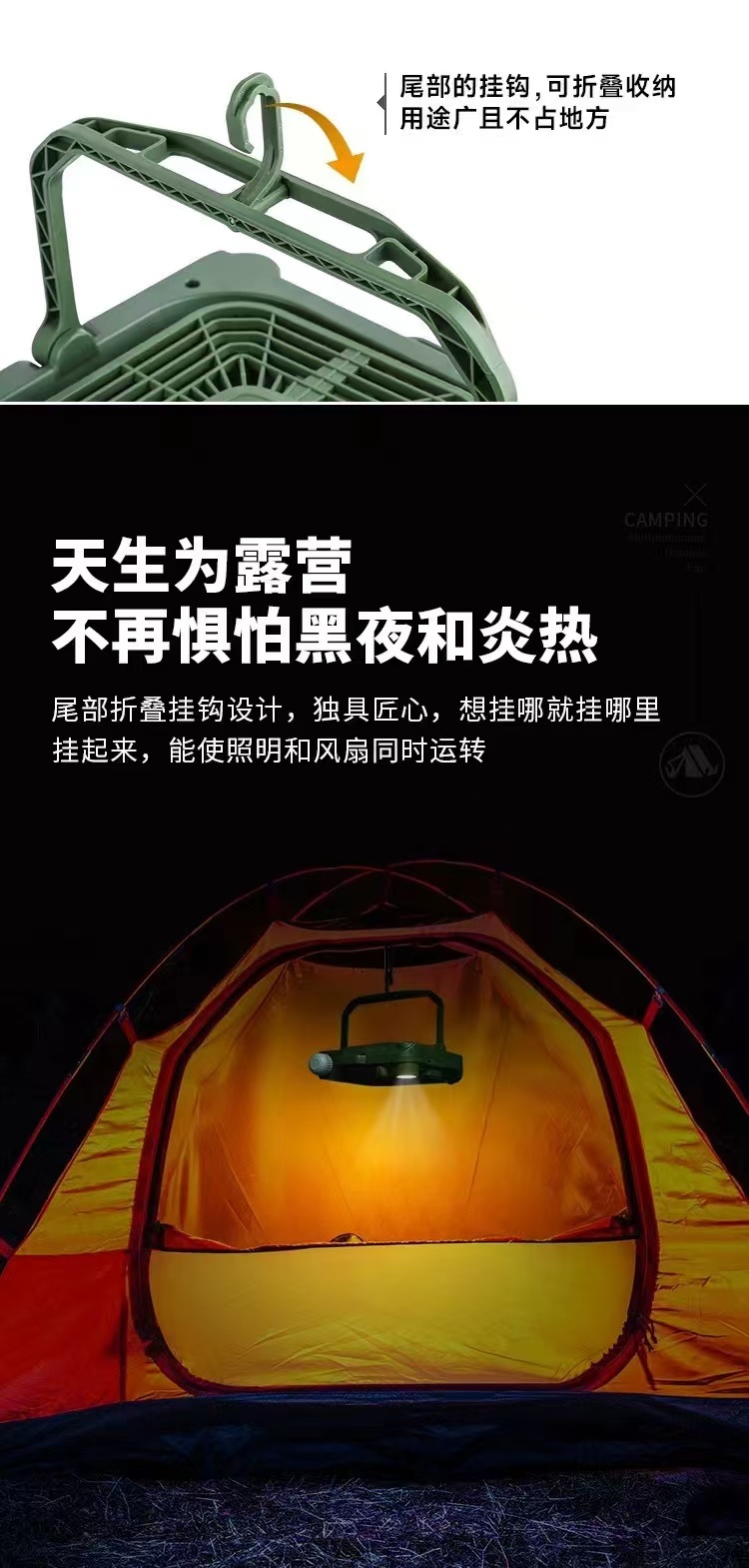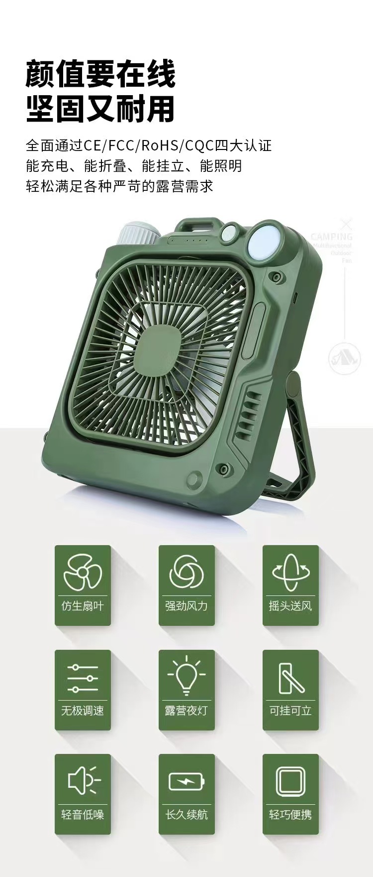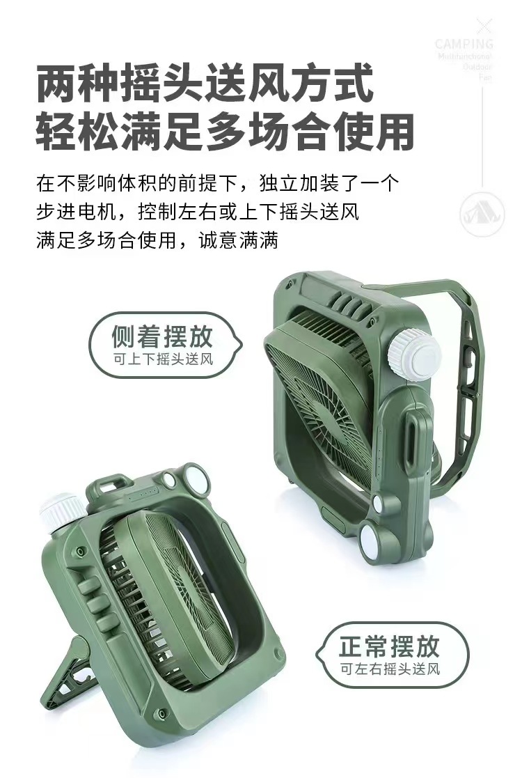 국경 간 새로운 야외 캠핑 팬 휴대용 캠핑 조명 음소거 방비 팬 빛 흔들 머리 충전