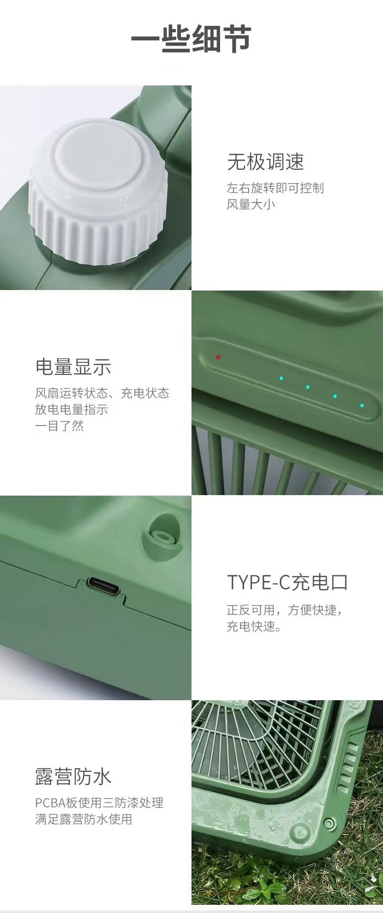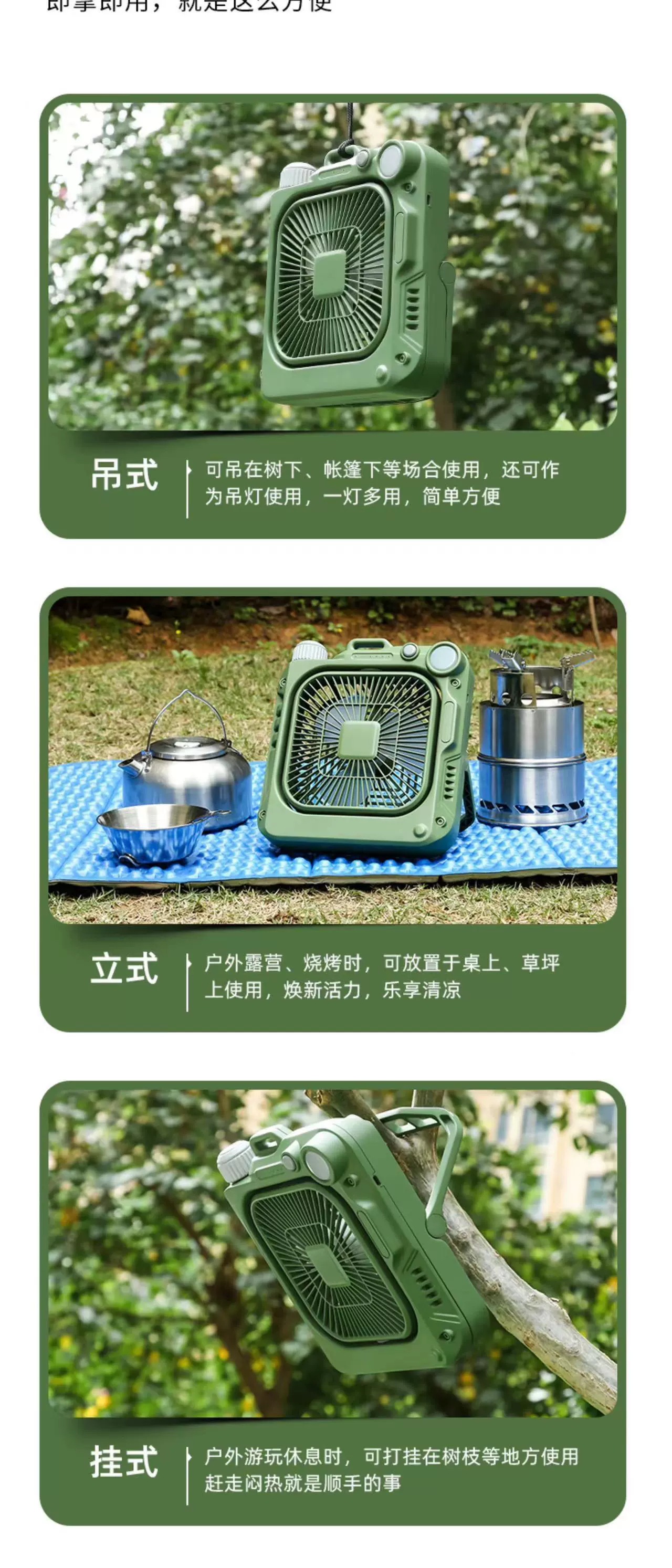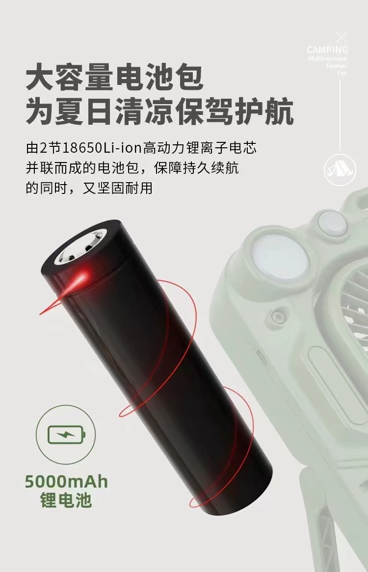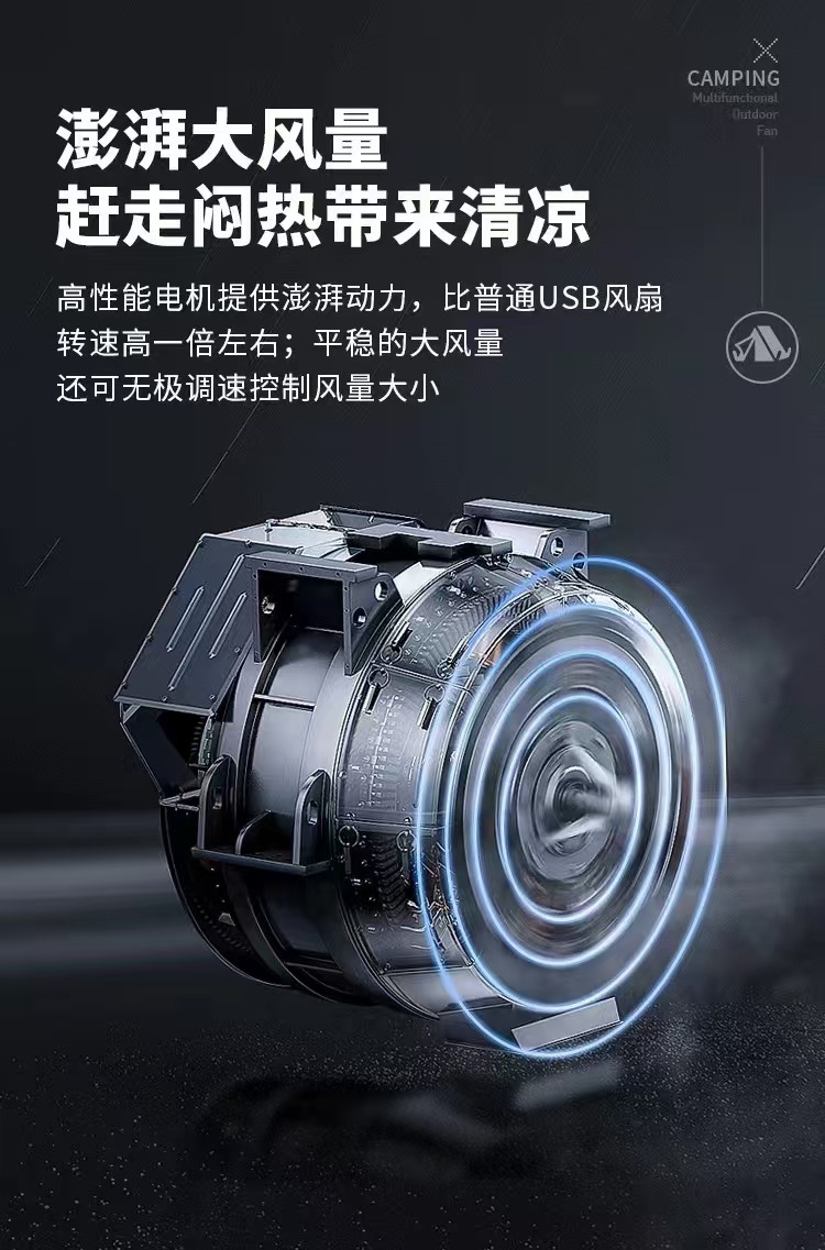 국경 간 새로운 야외 캠핑 팬 휴대용 캠핑 조명 음소거 방비 팬 빛 흔들 머리 충전