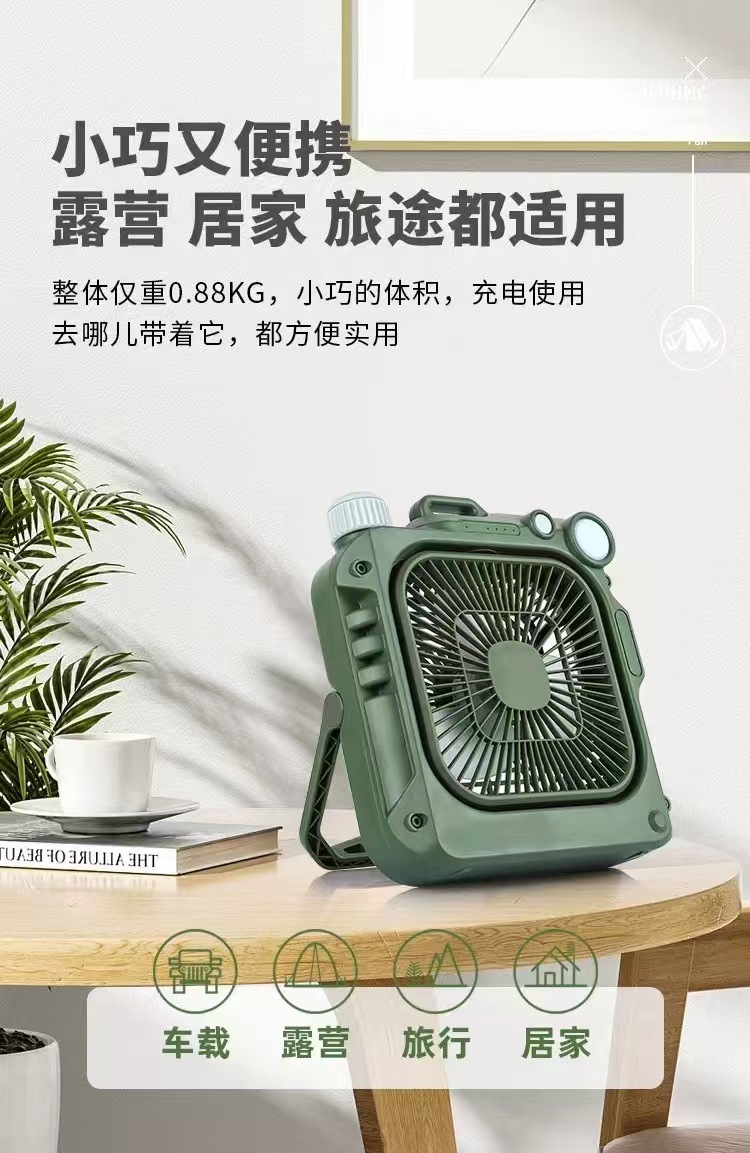 국경 간 새로운 야외 캠핑 팬 휴대용 캠핑 조명 음소거 방비 팬 빛 흔들 머리 충전스토어 가기