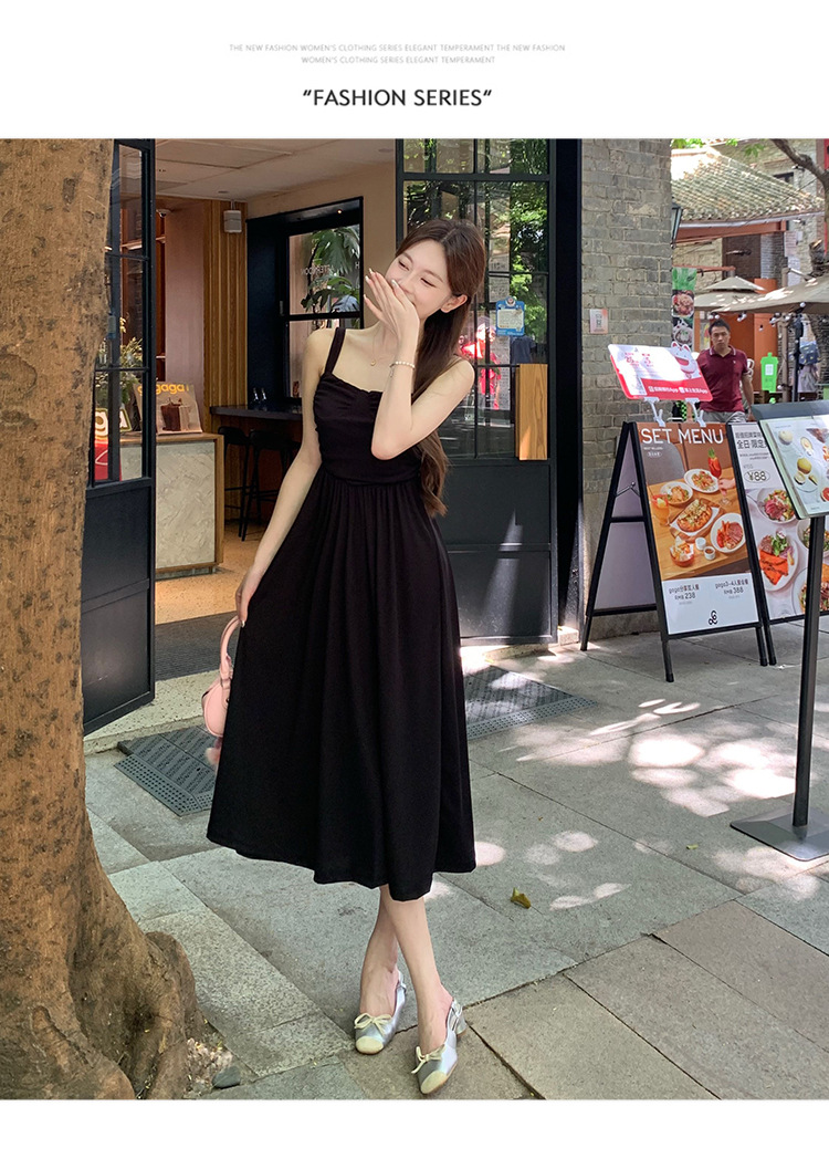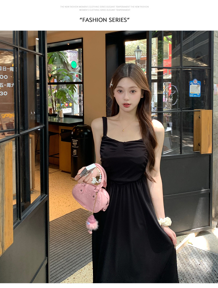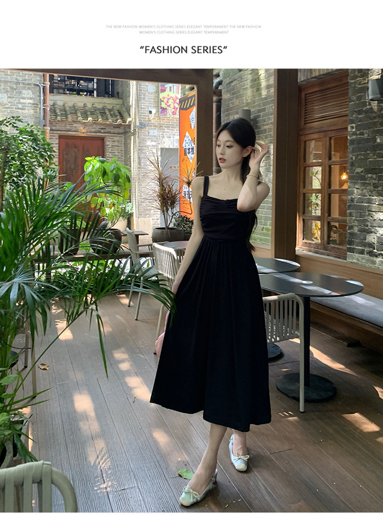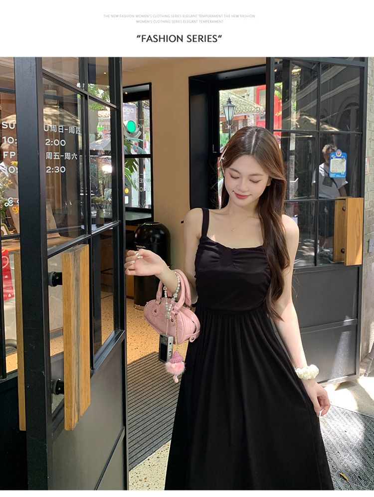 프랑스 하이 엔드 퍼스트 러브 블랙 슬링 원피스 여성 여름 2025 새로운 여름 롱 스커트 우아한 슬림 핏
