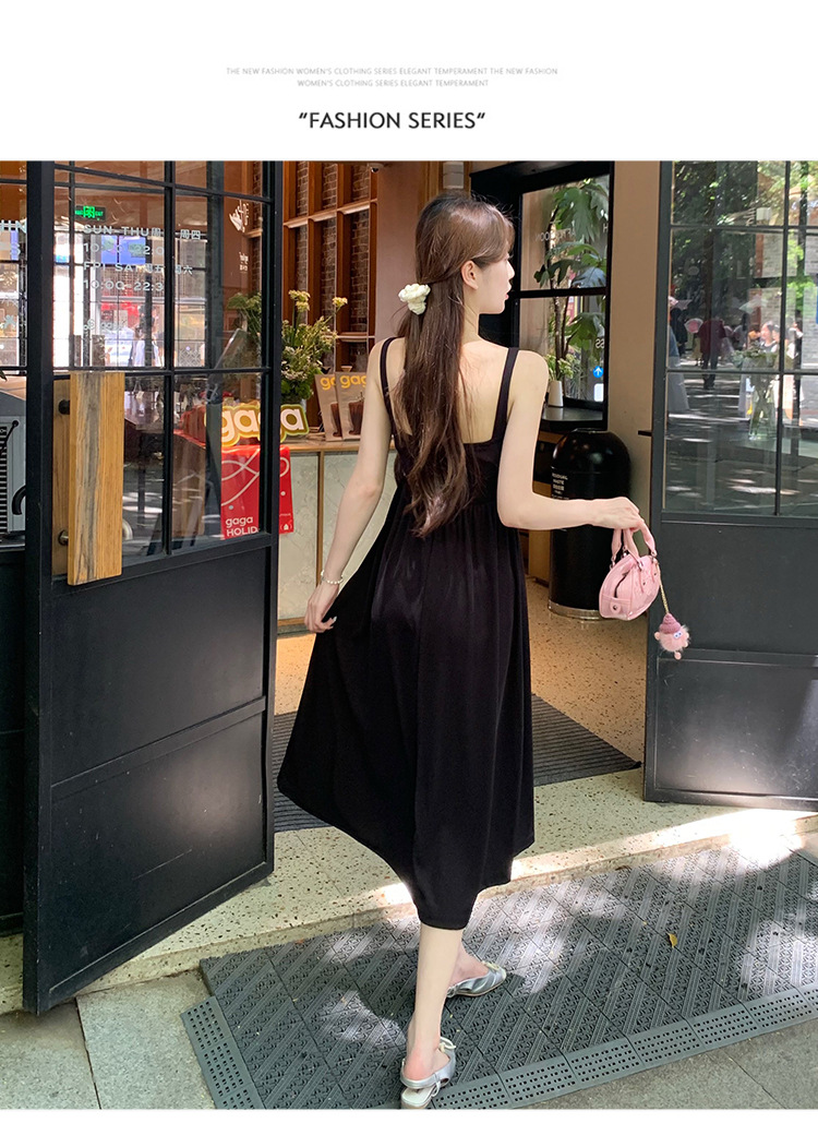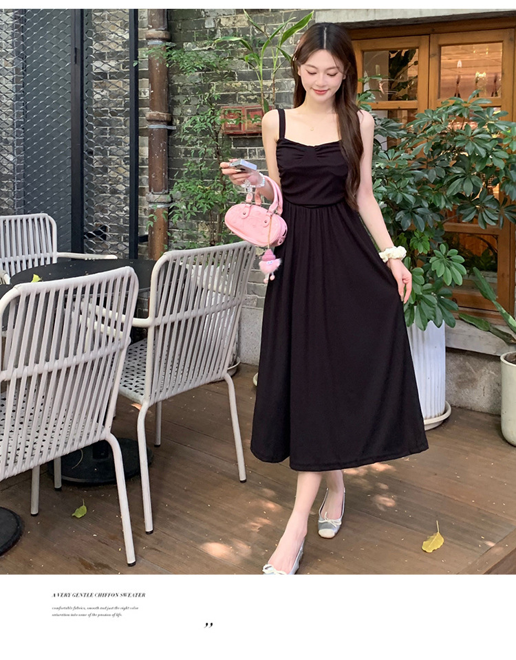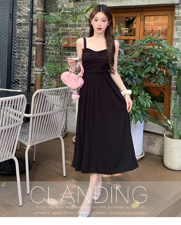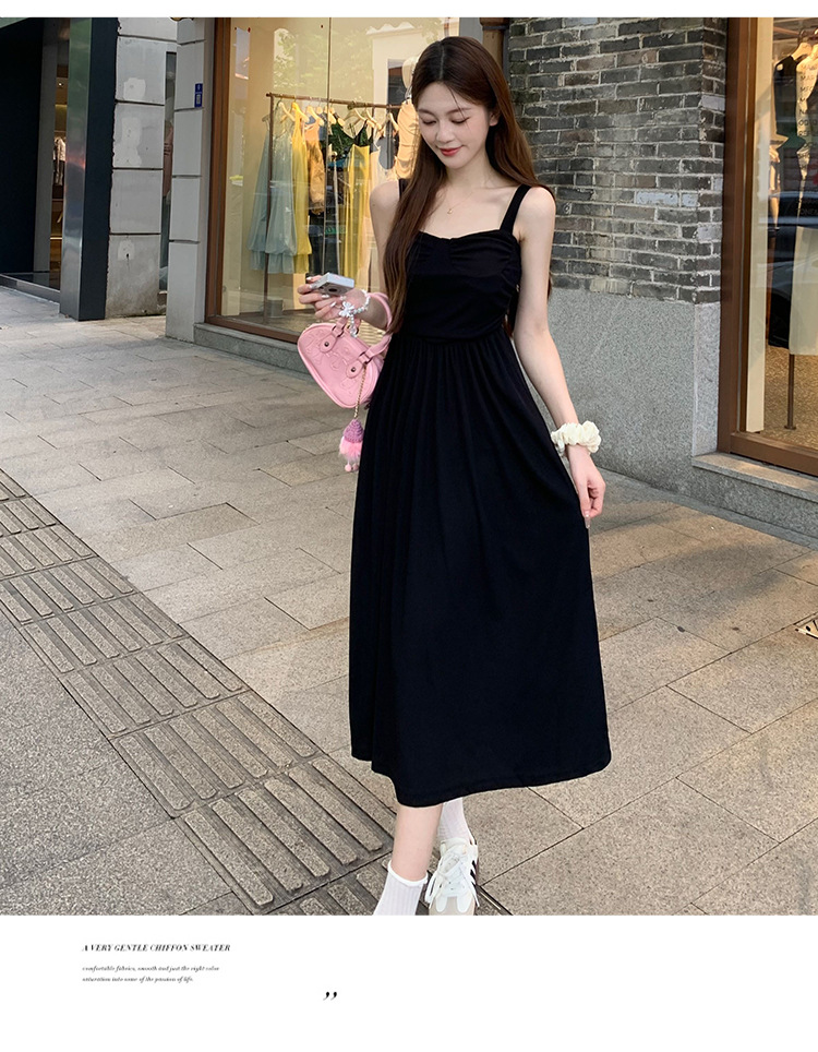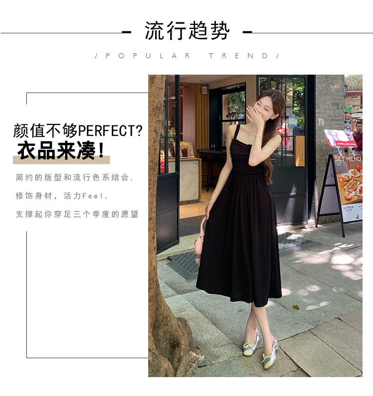 프랑스 하이 엔드 퍼스트 러브 블랙 슬링 원피스 여성 여름 2025 새로운 여름 롱 스커트 우아한 슬림 핏