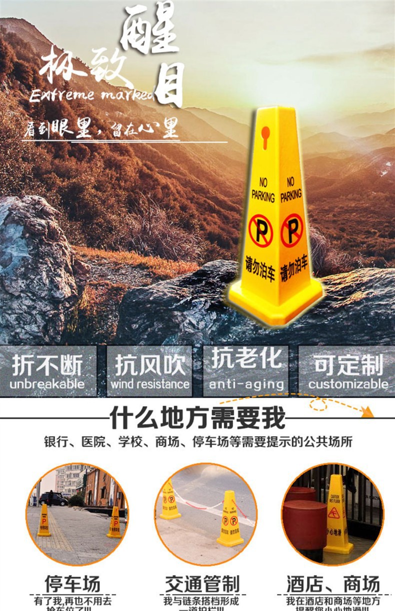 두꺼운 플라스틱 도로 콘 사각형 콘 광고 사각형 표지판 주차 금지 주차 금지 경고 표시스토어 가기