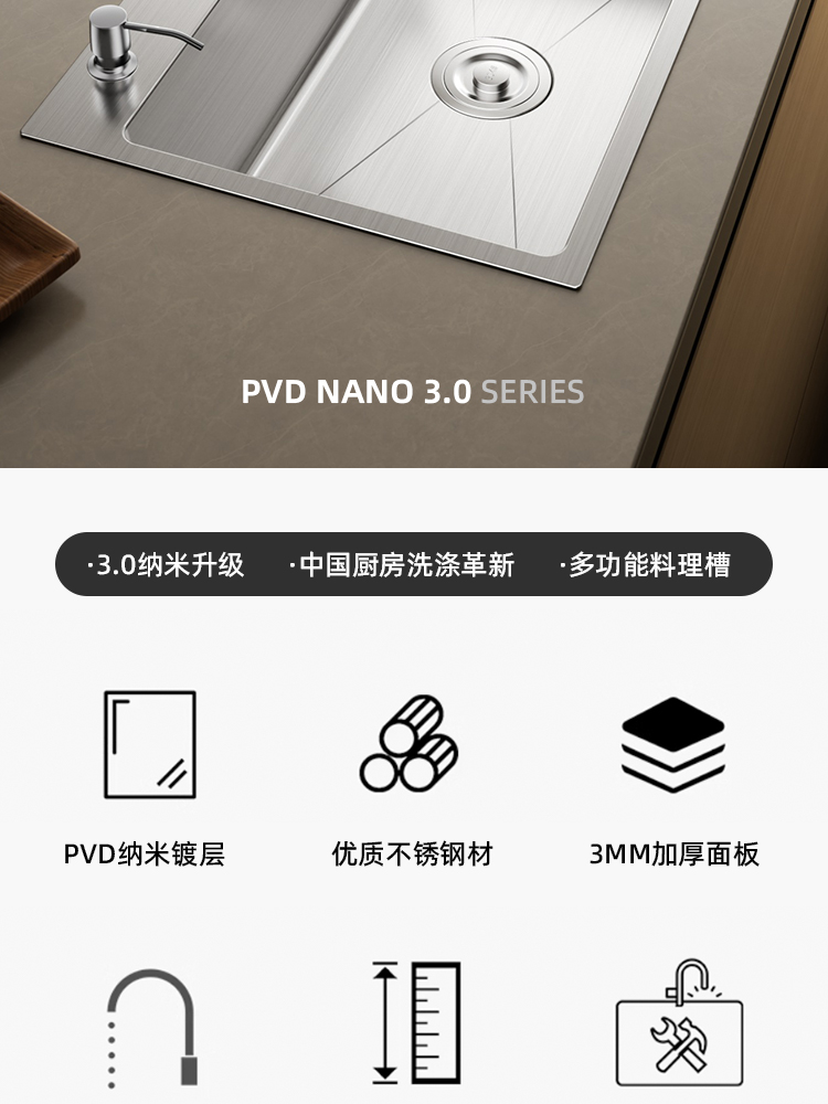 • [두꺼운 스테인리스 대형 싱글탱크] 80x45cm | 스테인리스 냉온수 수도꼭지 | 비누 디스펜서