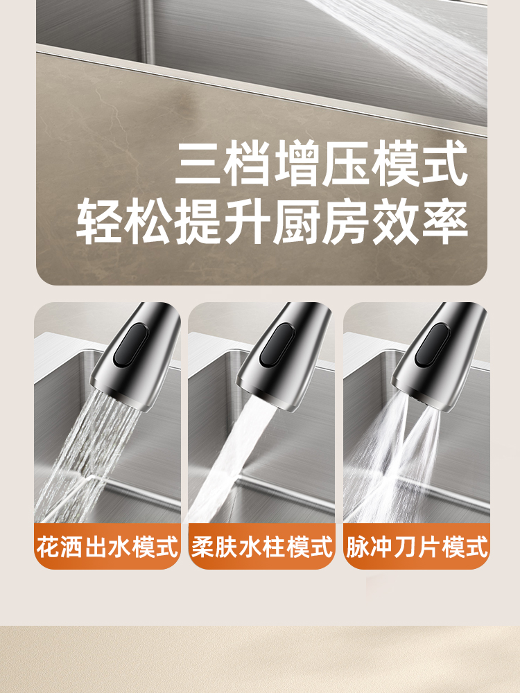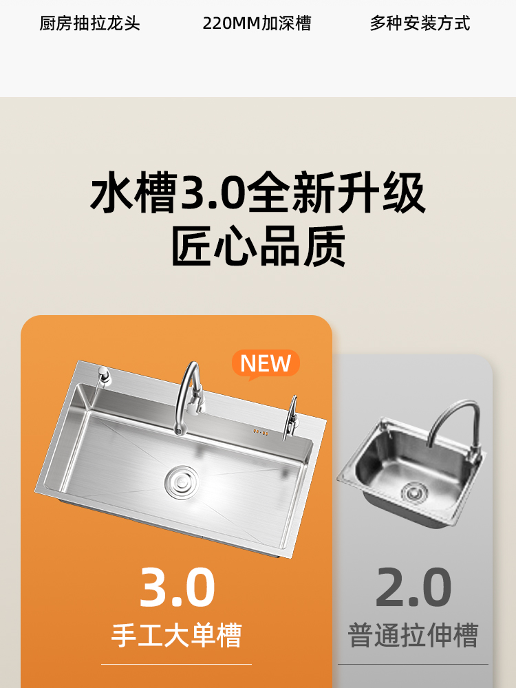 • [두꺼운 스테인리스 대형 싱글탱크] 80x45cm | 3단 부스터 풀아웃수전 | 컵워셔 | 비누디스펜서