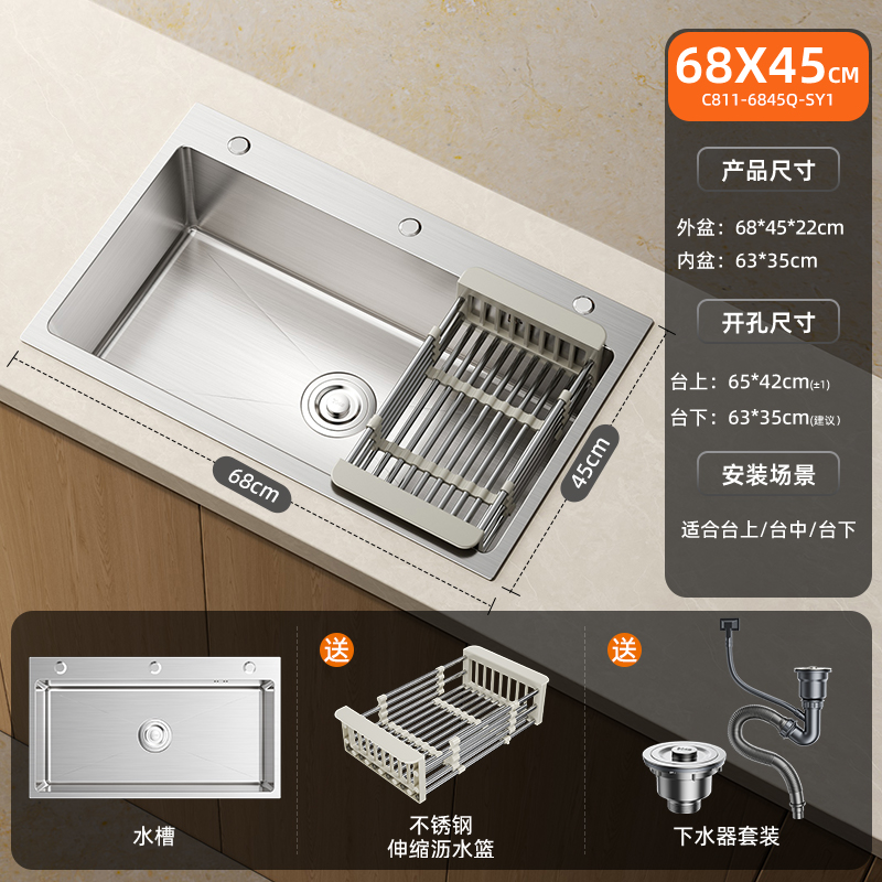 • [특대형 두꺼운 스테인레스 싱글싱크대] 65x45cm | 수도꼭지는 포함되어 있지 않습니다.