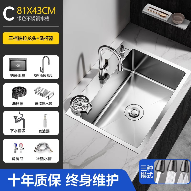 두꺼운 304 스테인레스 스틸 싱크 야채 싱크 대형 단일 싱크 가정용 주방 야채 싱크 싱크대 아래 싱크대스토어 가기