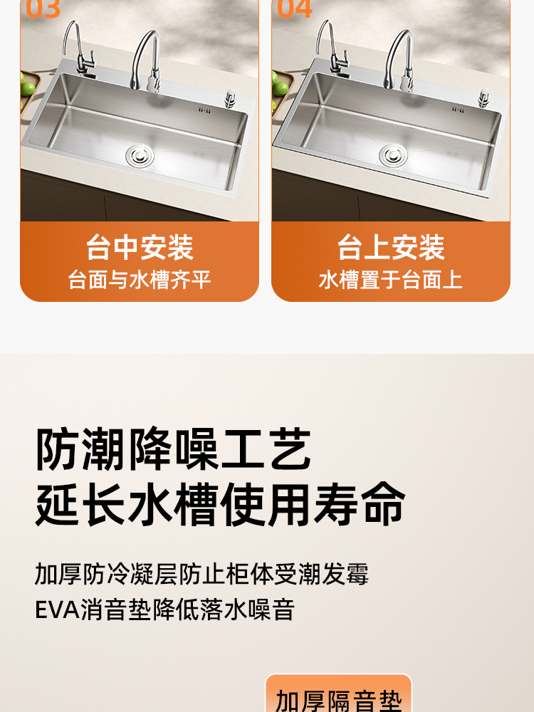 • [특대형 두꺼운 스테인레스 싱글싱크대] 80x45cm | 수도꼭지는 포함되어 있지 않습니다.