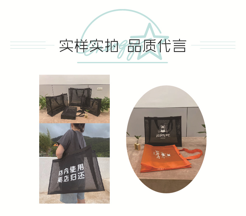 대용량 투명 나일론 메쉬 휴대용 쇼핑백, 여행용 비치 수납백, 지퍼 토트백스토어 가기