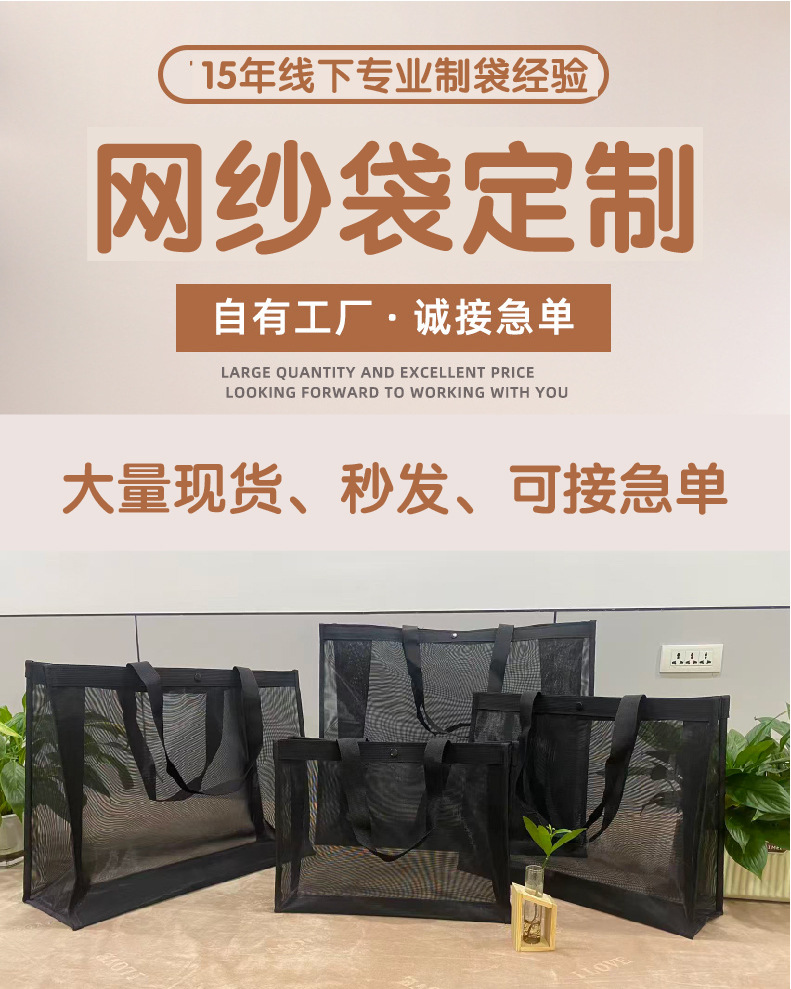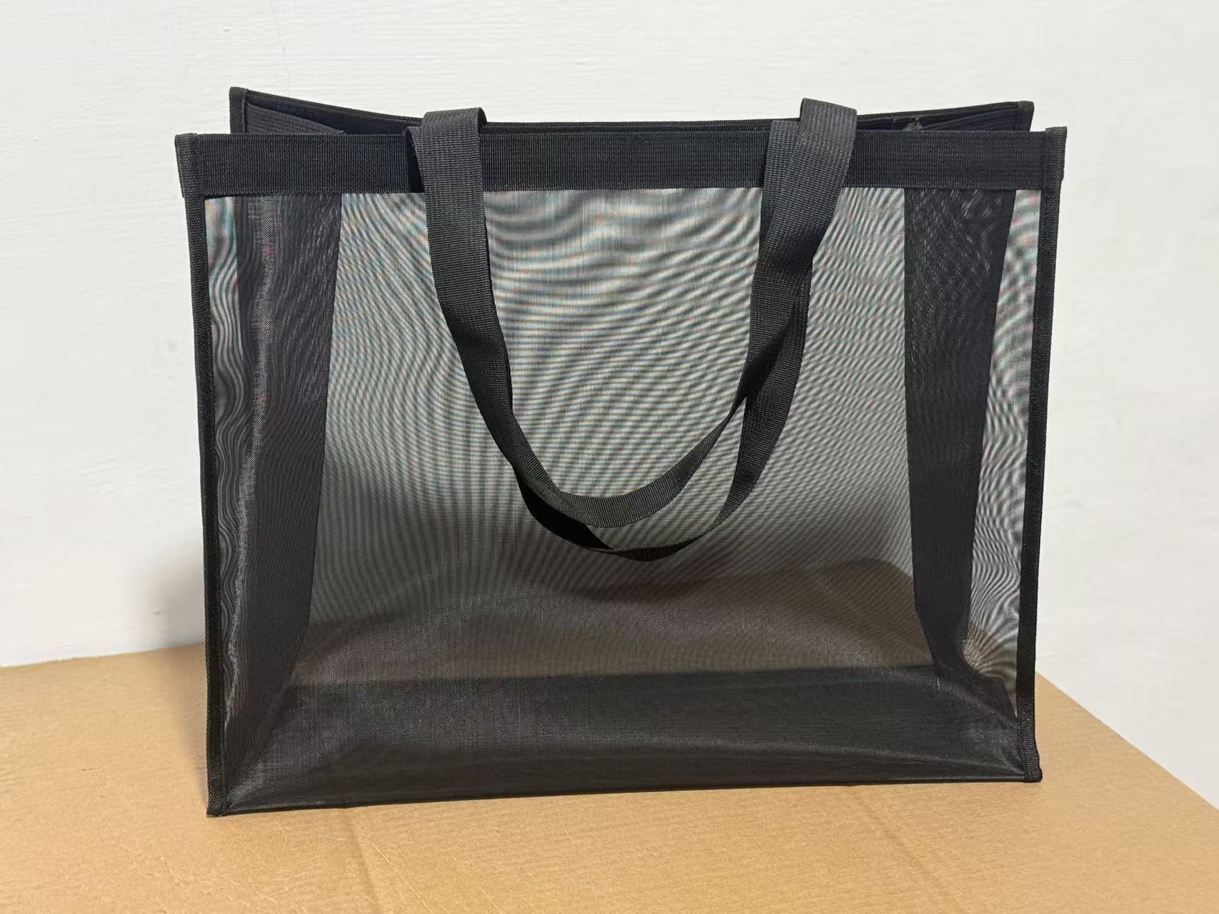 대용량 투명 나일론 메쉬 휴대용 쇼핑백, 여행용 비치 수납백, 지퍼 토트백