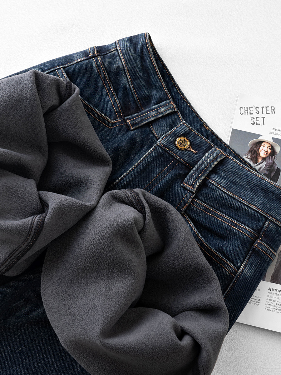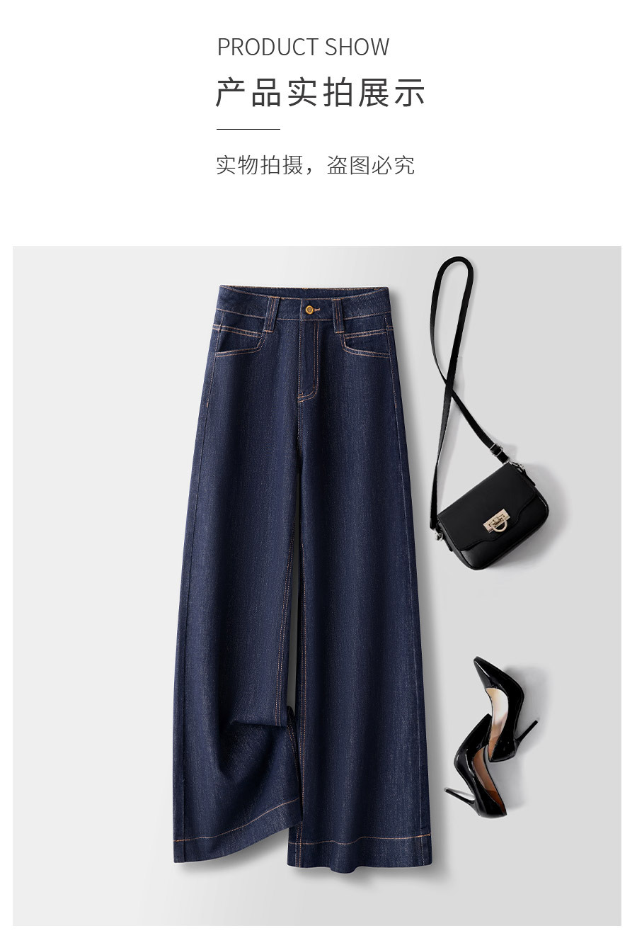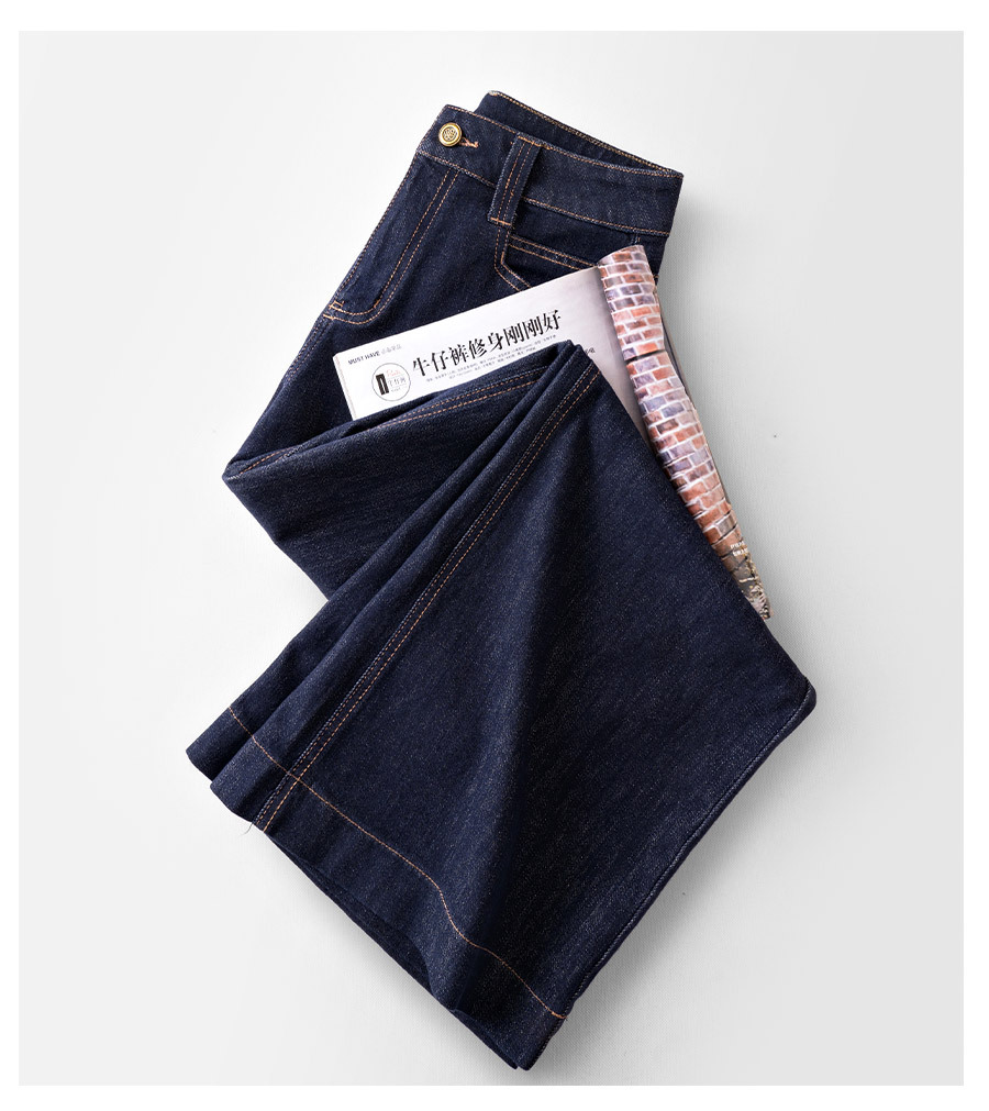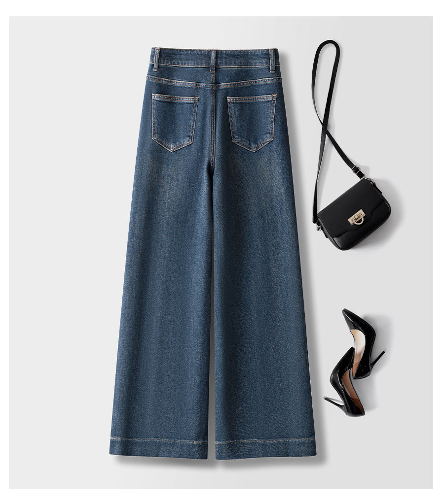 하이 엔드 네이비 데님 넓은 다리 바지 여성용 새 봄 2025 높은 허리 걸레 바지 바지 바지스토어 가기