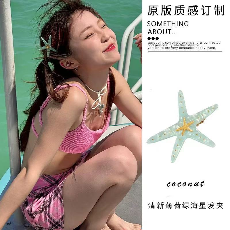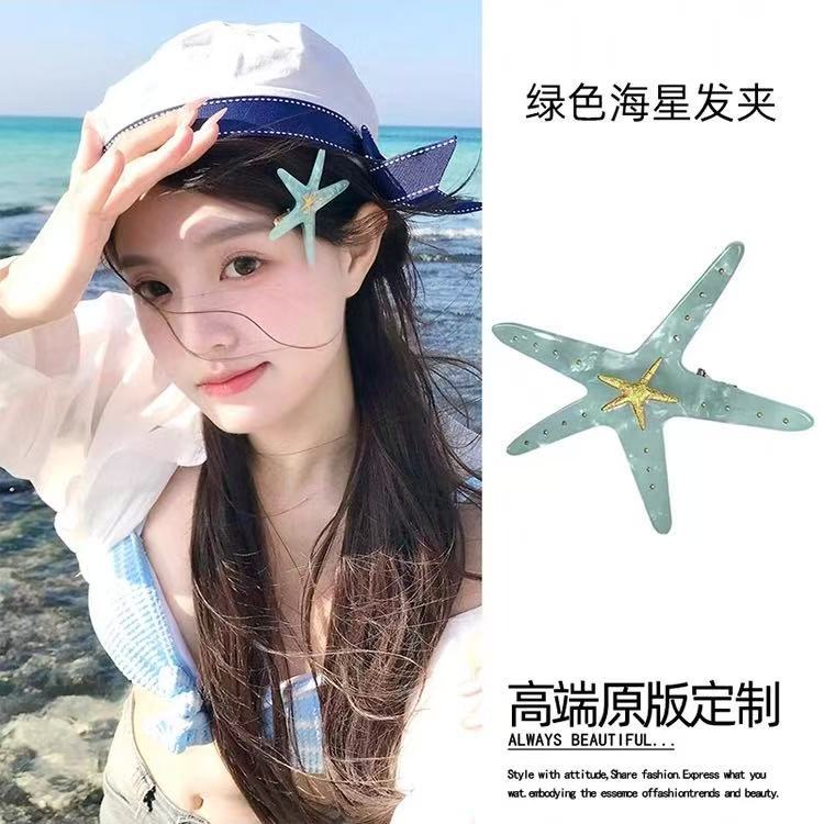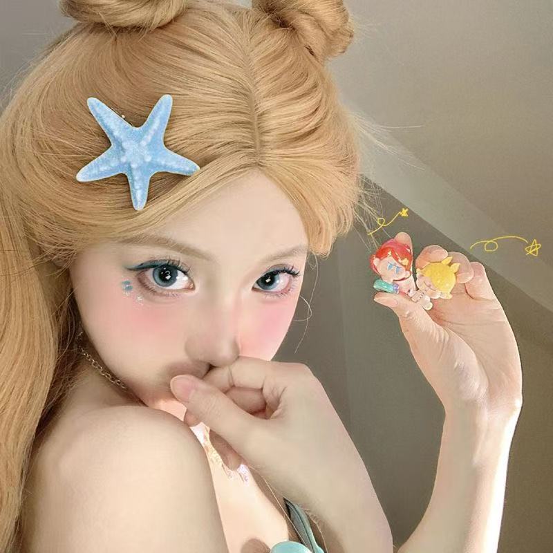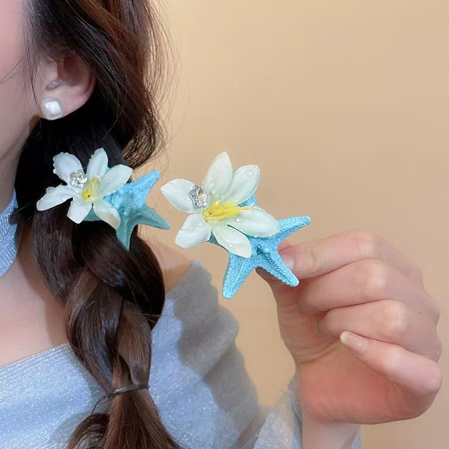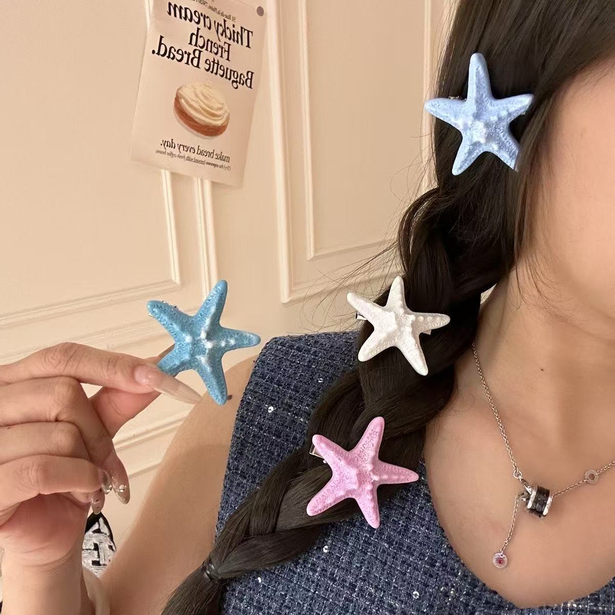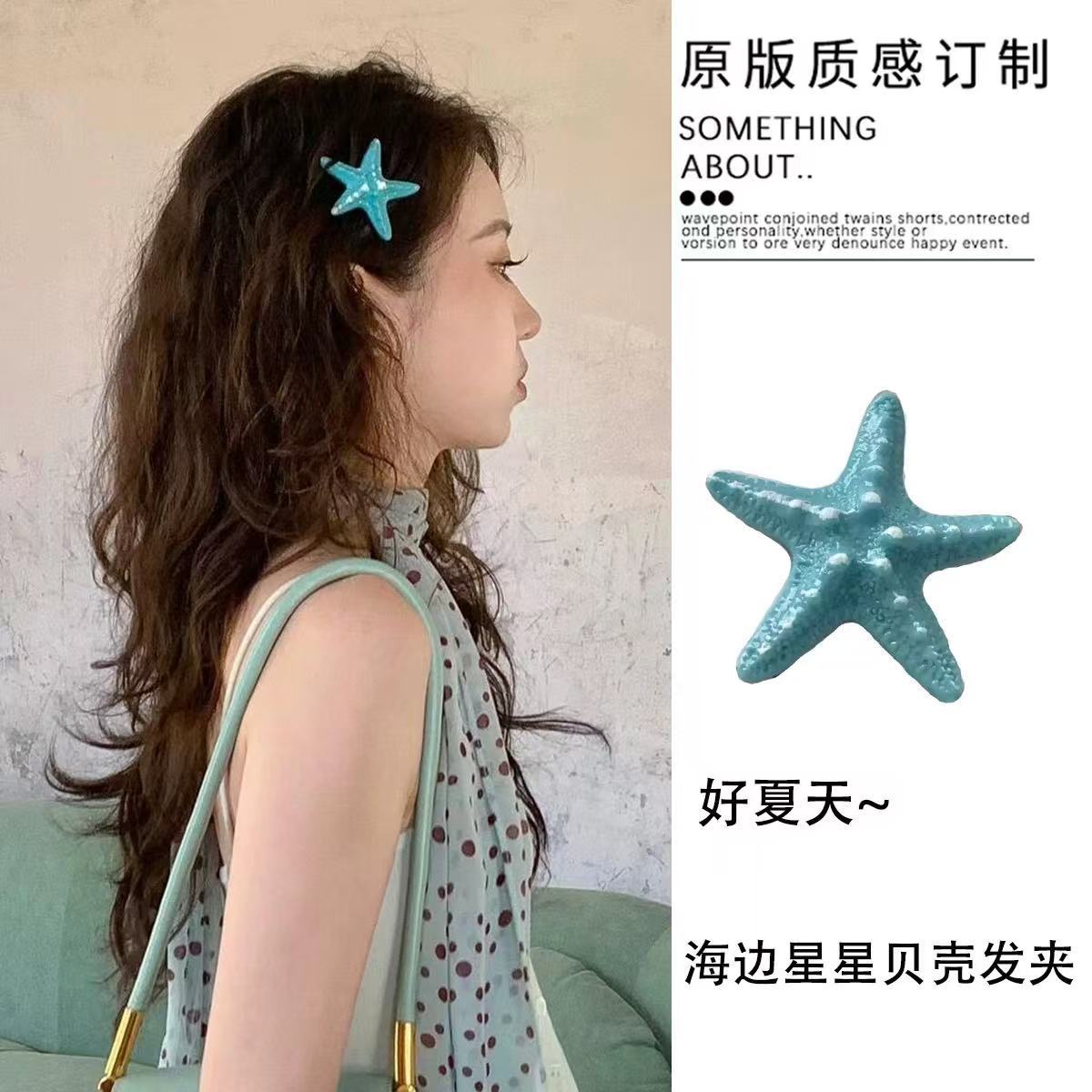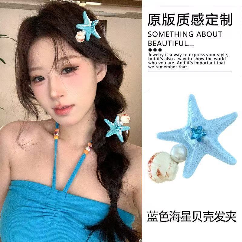 여름 달콤한 가리 블루 불가사리 헤어핀 귀여운 해변 휴가 덕빌 뱅 사이드 클립 헤어 액세서리스토어 가기