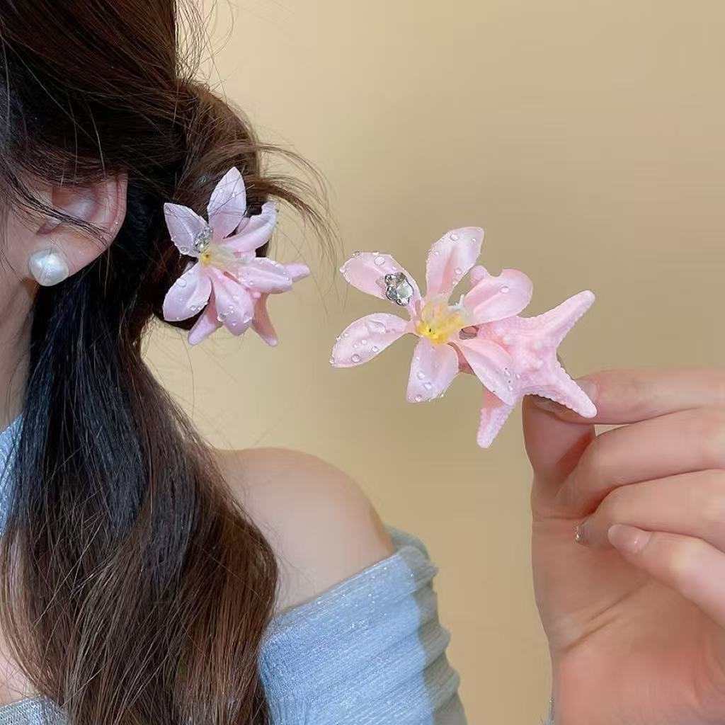 • 7366 이슬꽃 불가사리 머리핀-핑크꽃