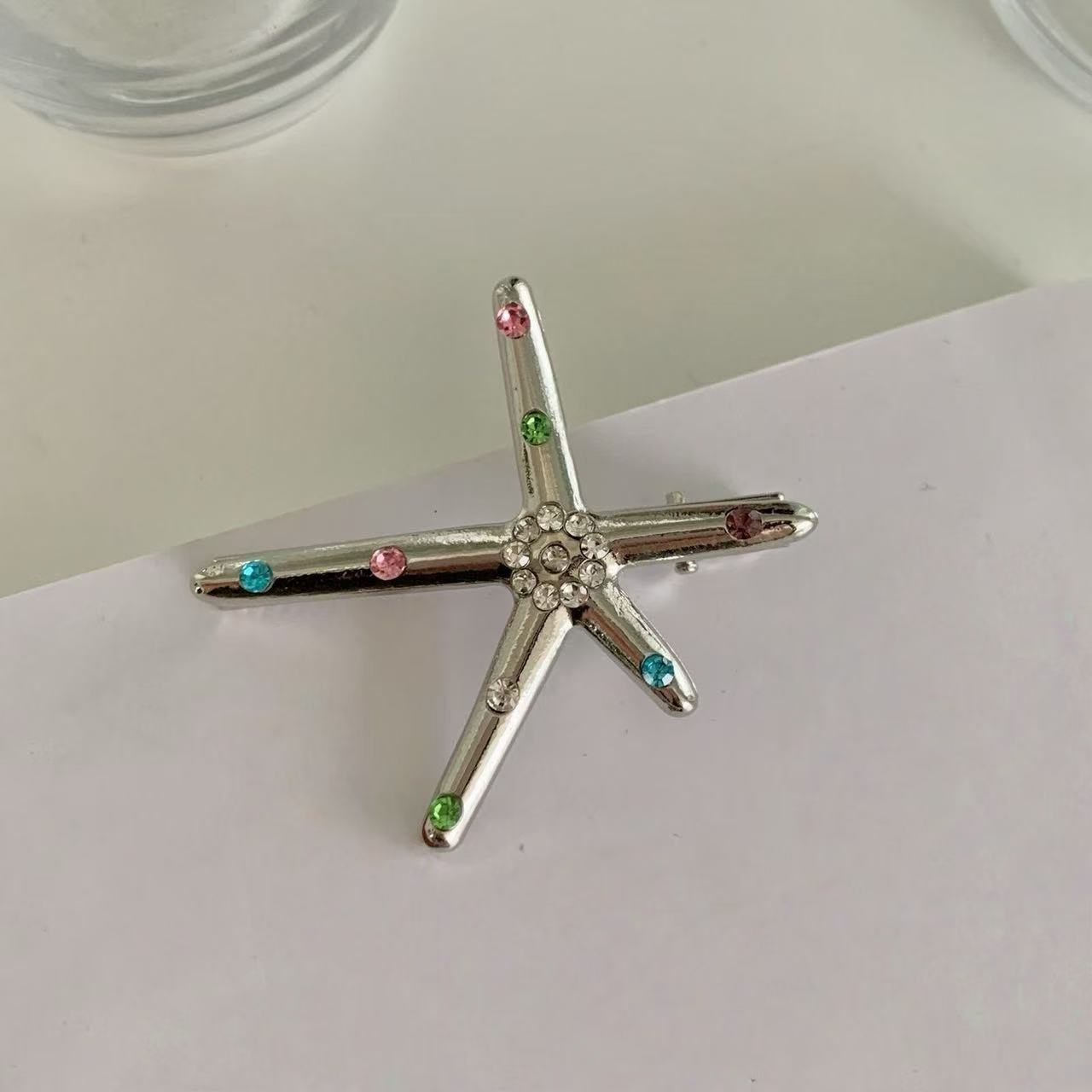 • 5089 컬러 다이아몬드 메탈 불가사리 머리핀-실버
