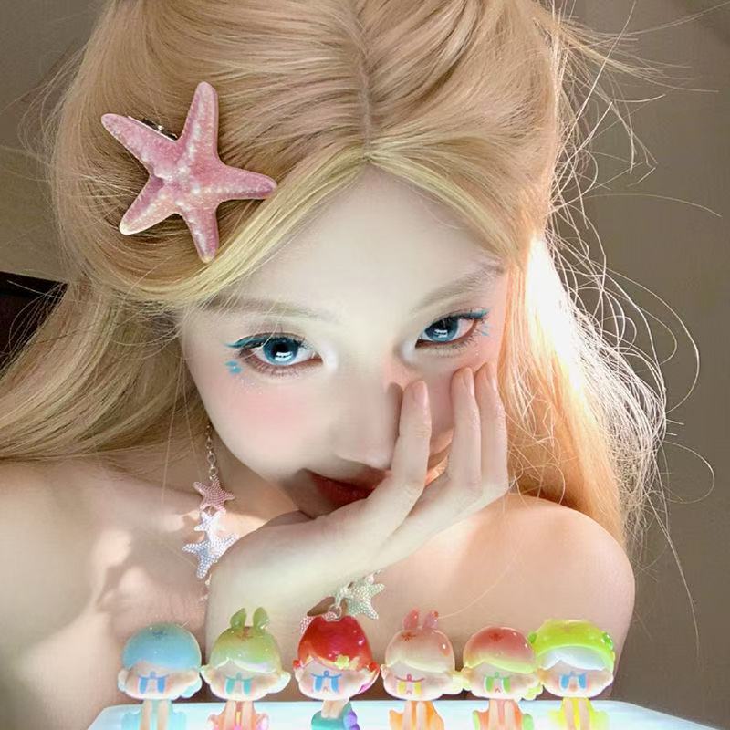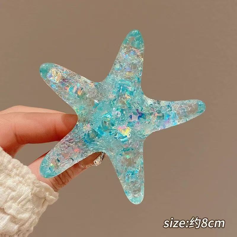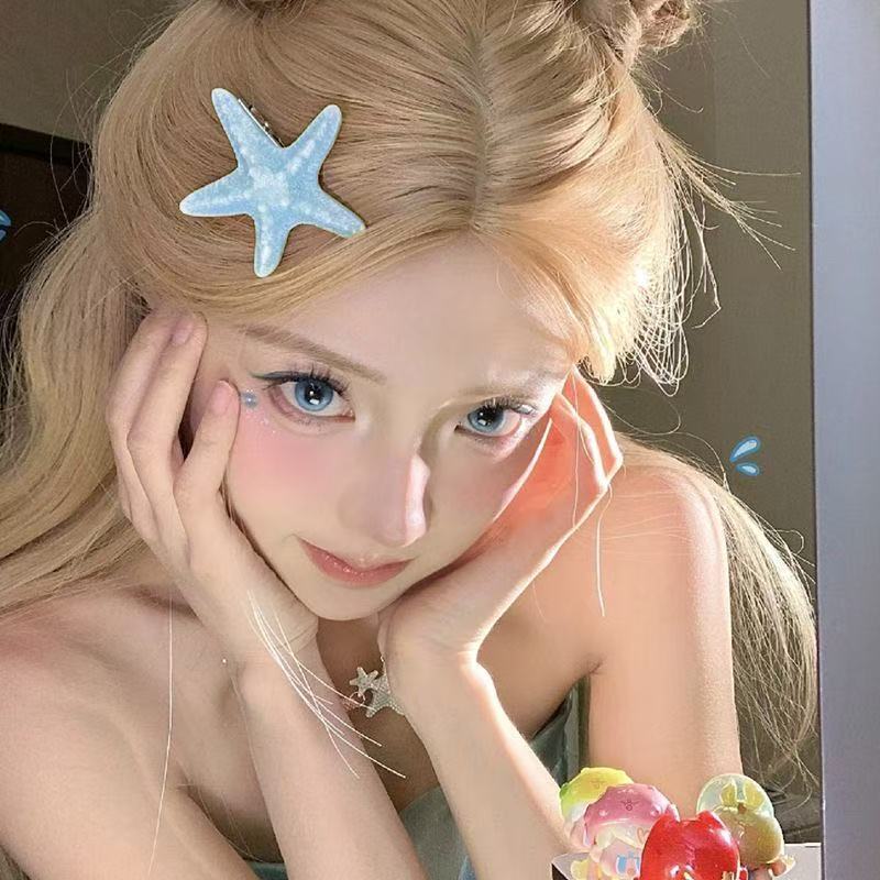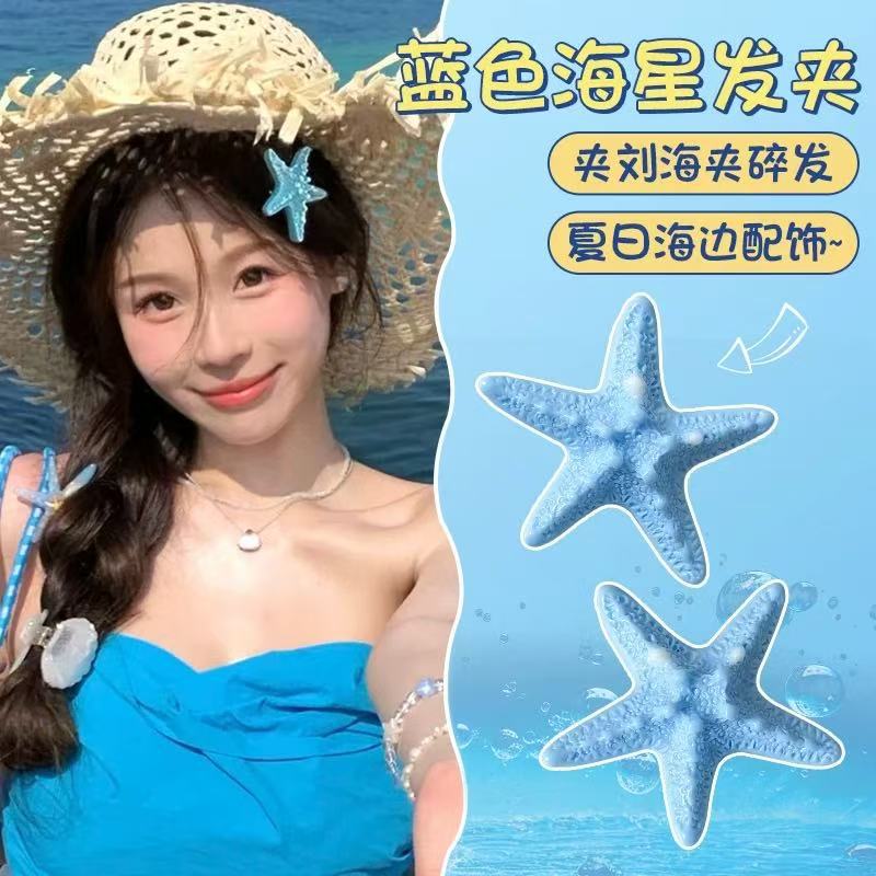 여름 달콤한 가리 블루 불가사리 헤어핀 귀여운 해변 휴가 덕빌 뱅 사이드 클립 헤어 액세서리