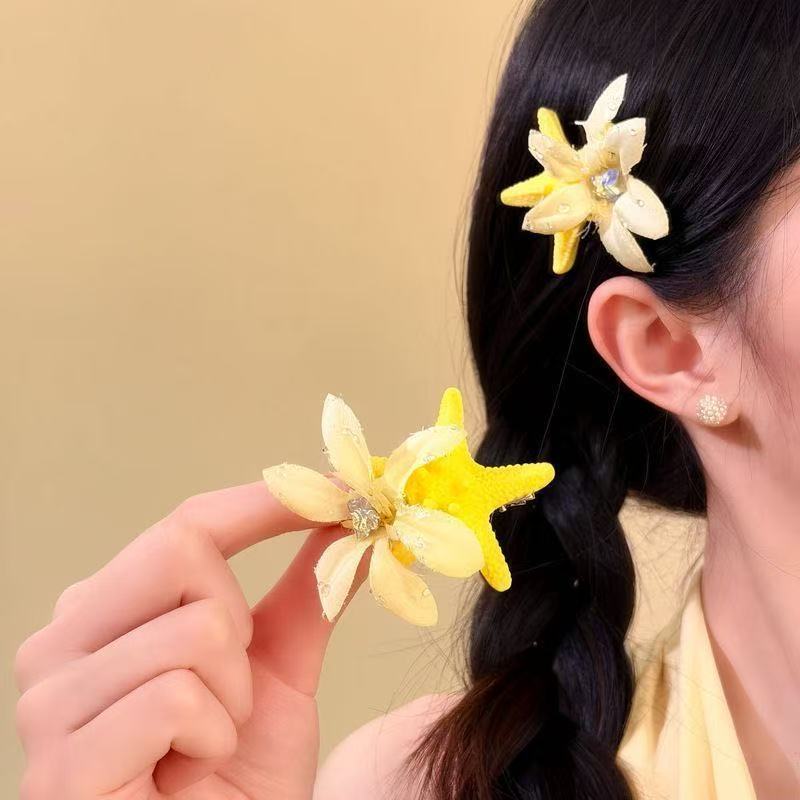 • 5779 다이아몬드가 박힌 화려한 불가사리 머리핀-노란 불가사리