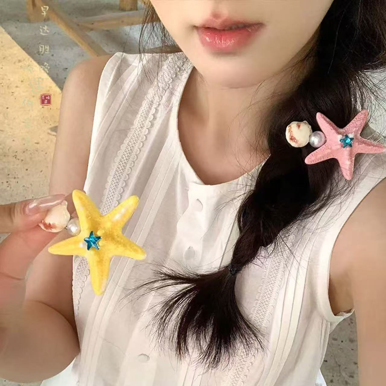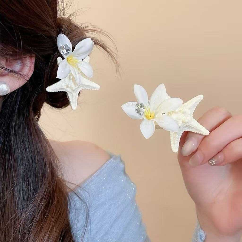 • 5895 쉘 불가사리 진주 헤어 클립-화이트