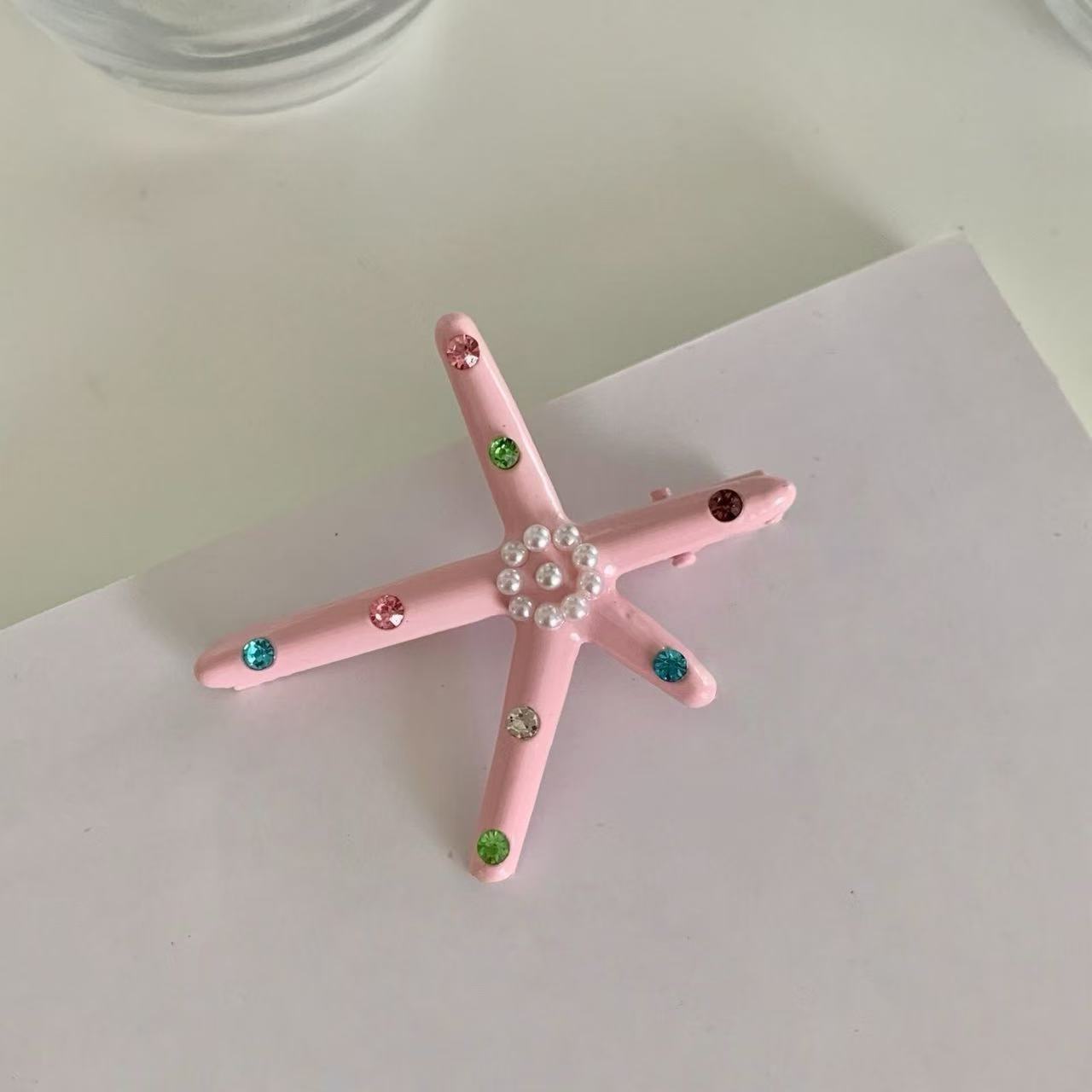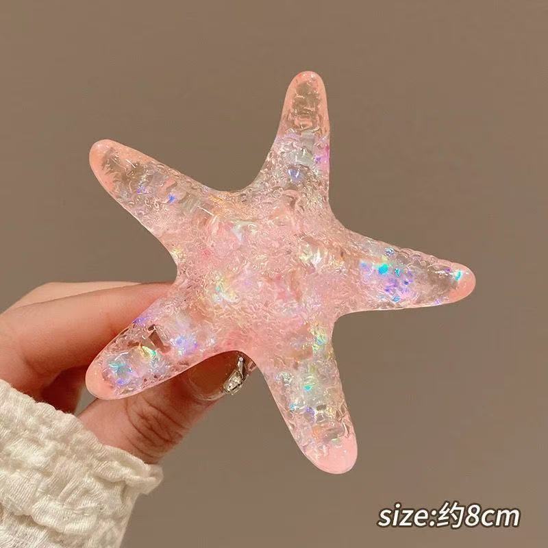 • 5779 다이아몬드가 박힌 화려한 불가사리 머리핀-핑크 불가사리
