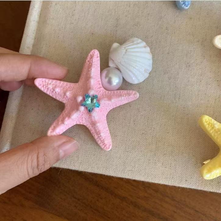 • 5895 쉘 불가사리 진주 헤어 클립-핑크