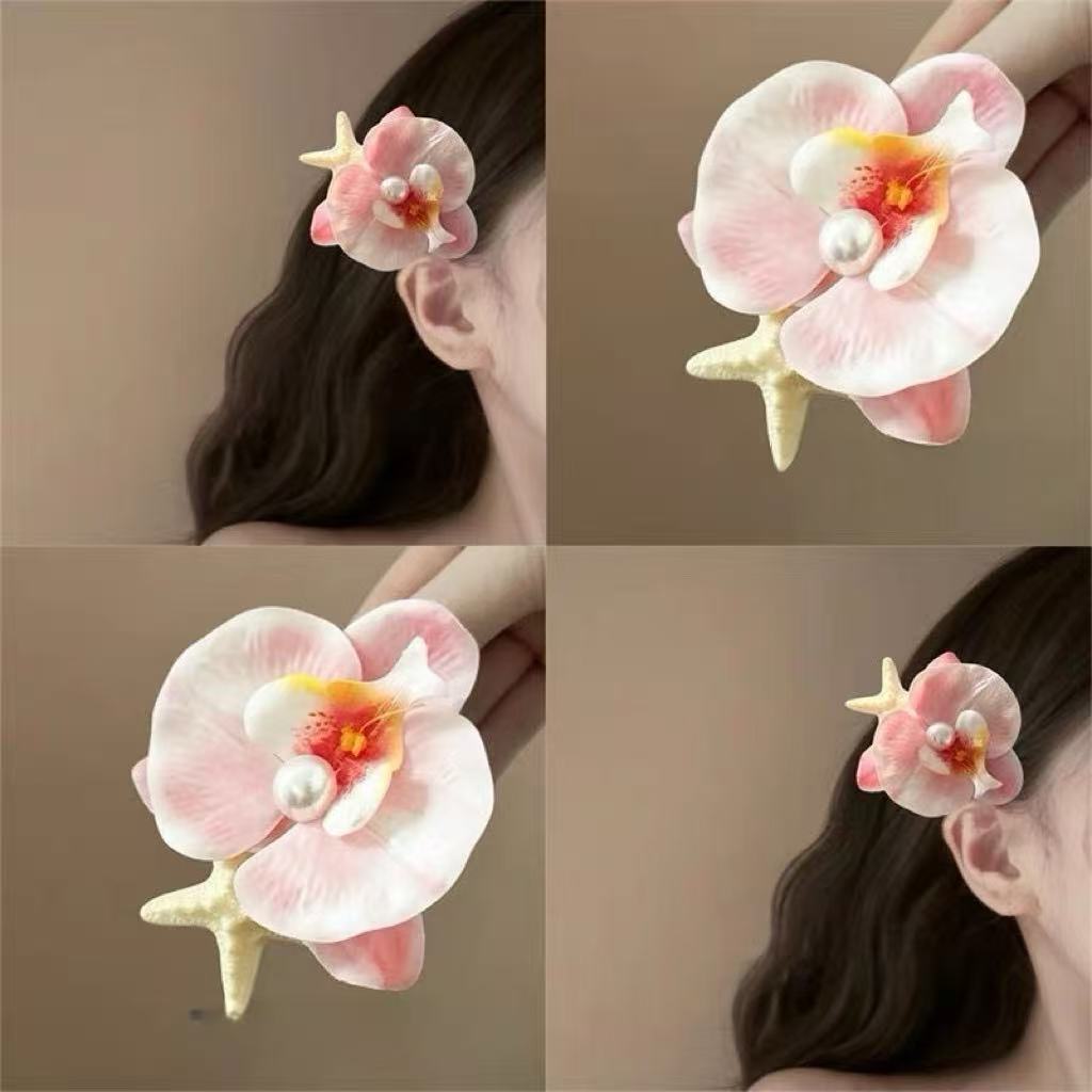 • 5876 불가사리와 호접란 머리핀-화이트 핑크