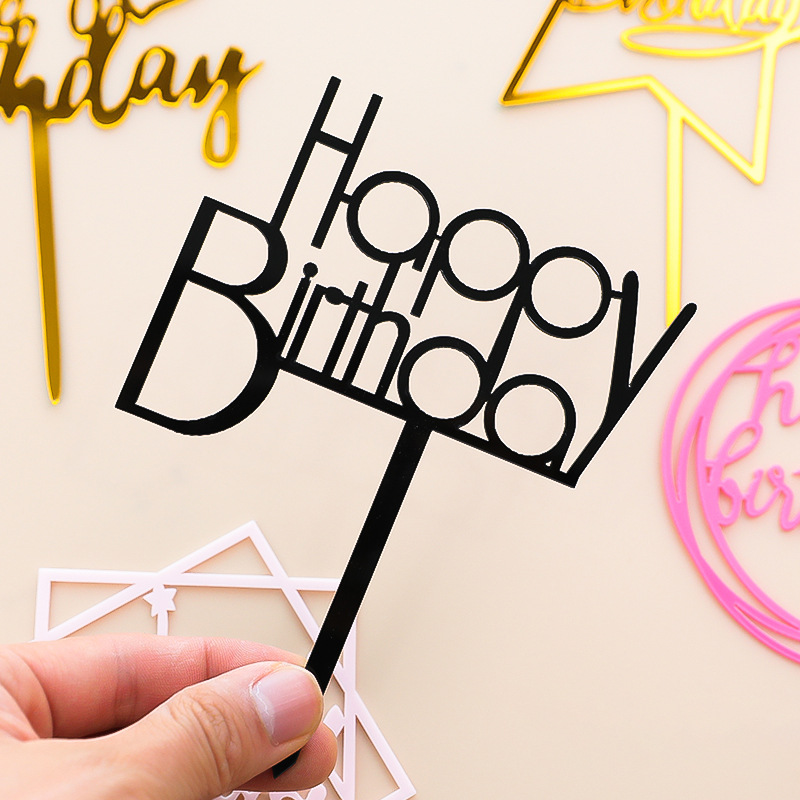 새로운 베이킹 케이크 장식 카드 골든 블랙 실버 HB 아크릴 생일 플러그인 카드 간단한 원피스스토어 가기
