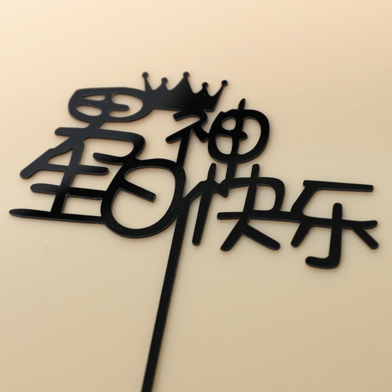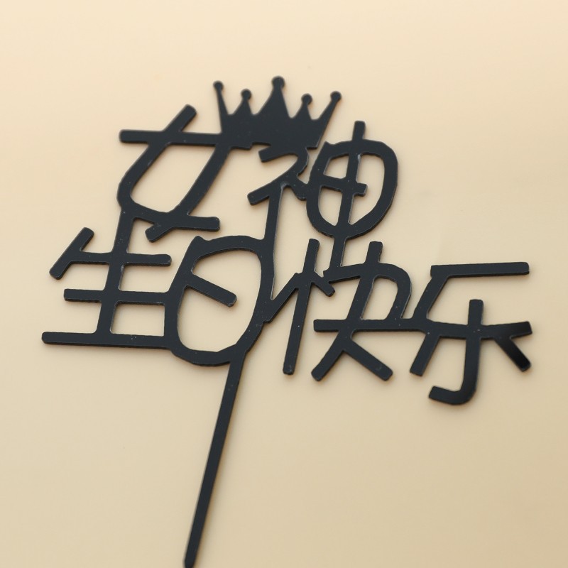 새로운 베이킹 케이크 장식 카드 골든 블랙 실버 HB 아크릴 생일 플러그인 카드 간단한 원피스