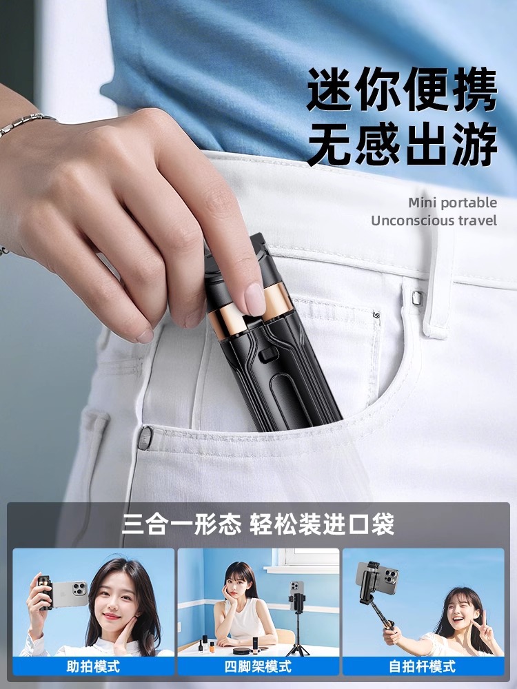 슈퍼 미니 셀카 스틱 2025 새로운 휴대 전화 셀카 스탠드 여행 휴대용 안정제 라이브 촬영스토어 가기
