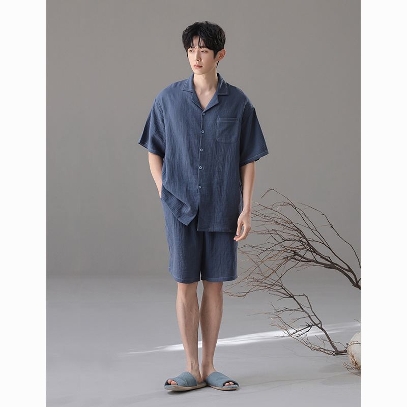 [클래스 A 더블 레이어 원사] 아기 코튼 봄과 여름 커플 파자마 코튼 원사 짧은 소매 느슨한 여성 가슴 패드 홈 옷 남성 A