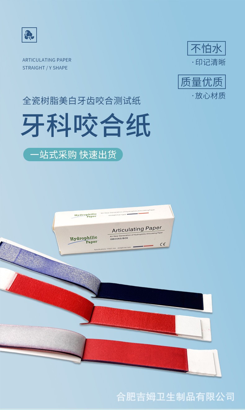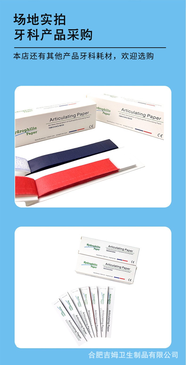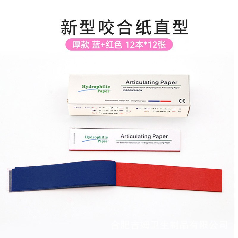 치과 교합 종이 Y 형 직선 양면 교합 종이 레드 블루 말굽 모양의 전체 입 교합 종이 12/상자