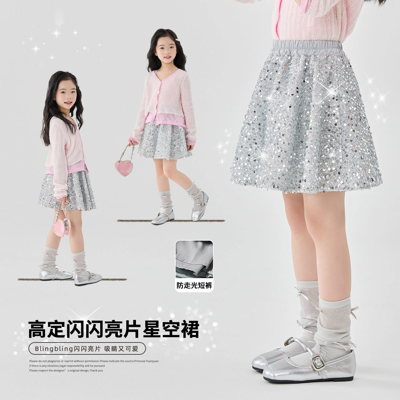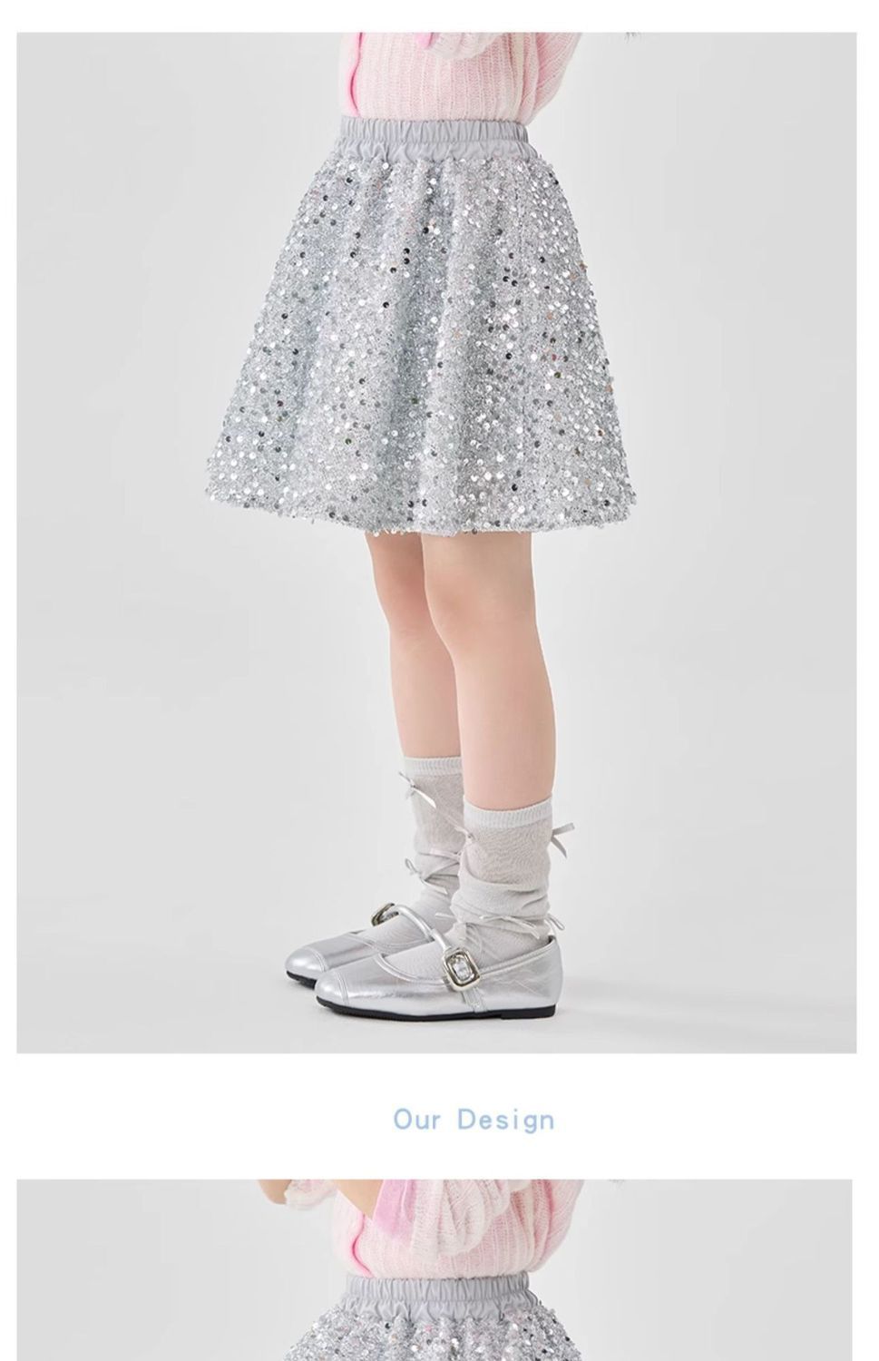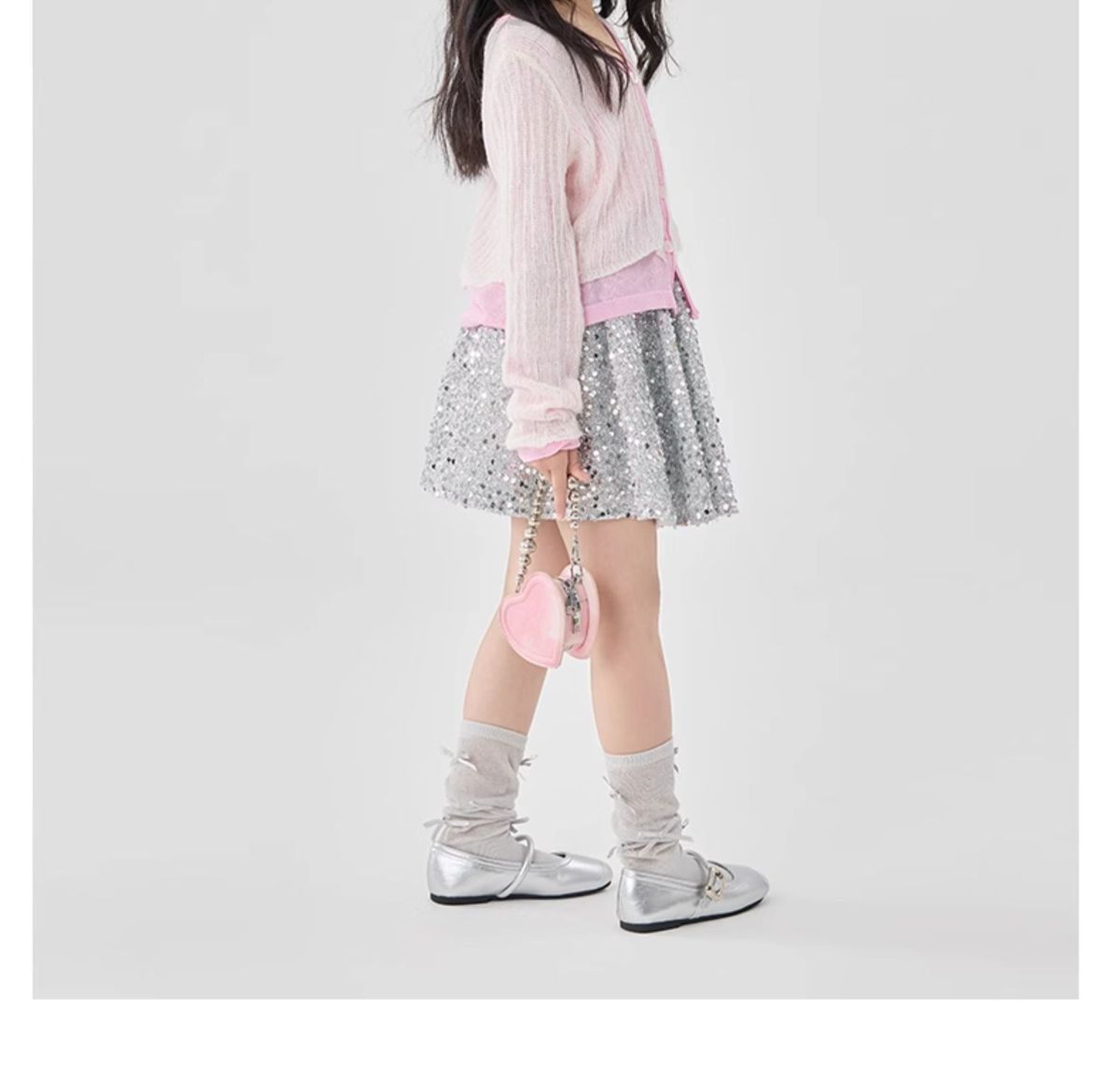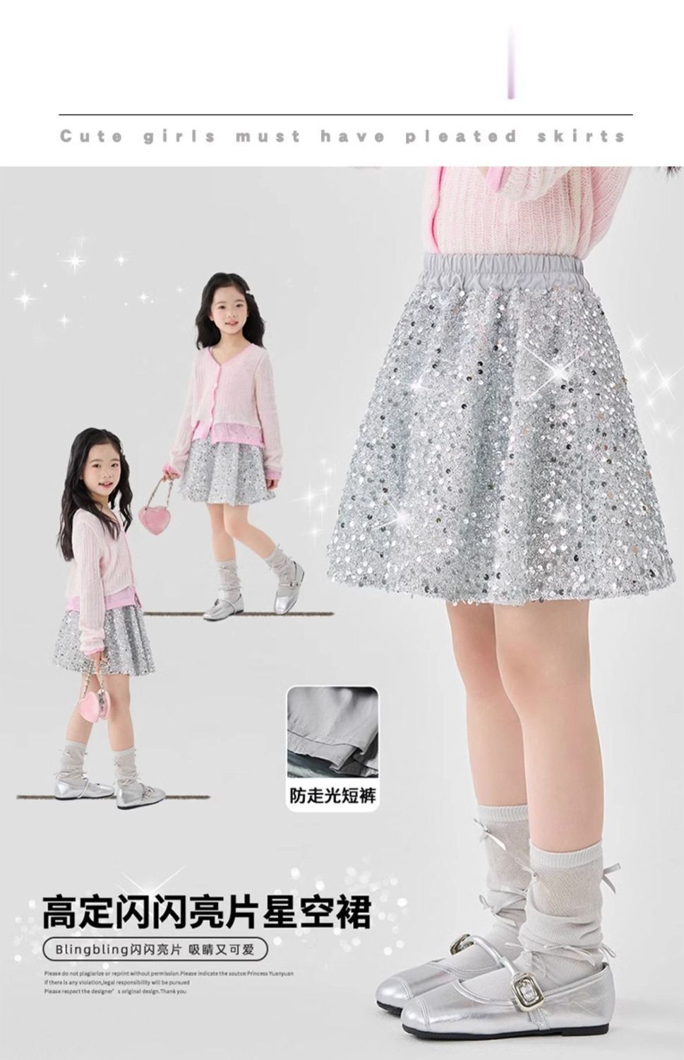 소녀 스커트 여름 스퀸 공주 스커트 어린이 투투 스커트 2025 봄과 가을 어린 소녀의 실버 스커트