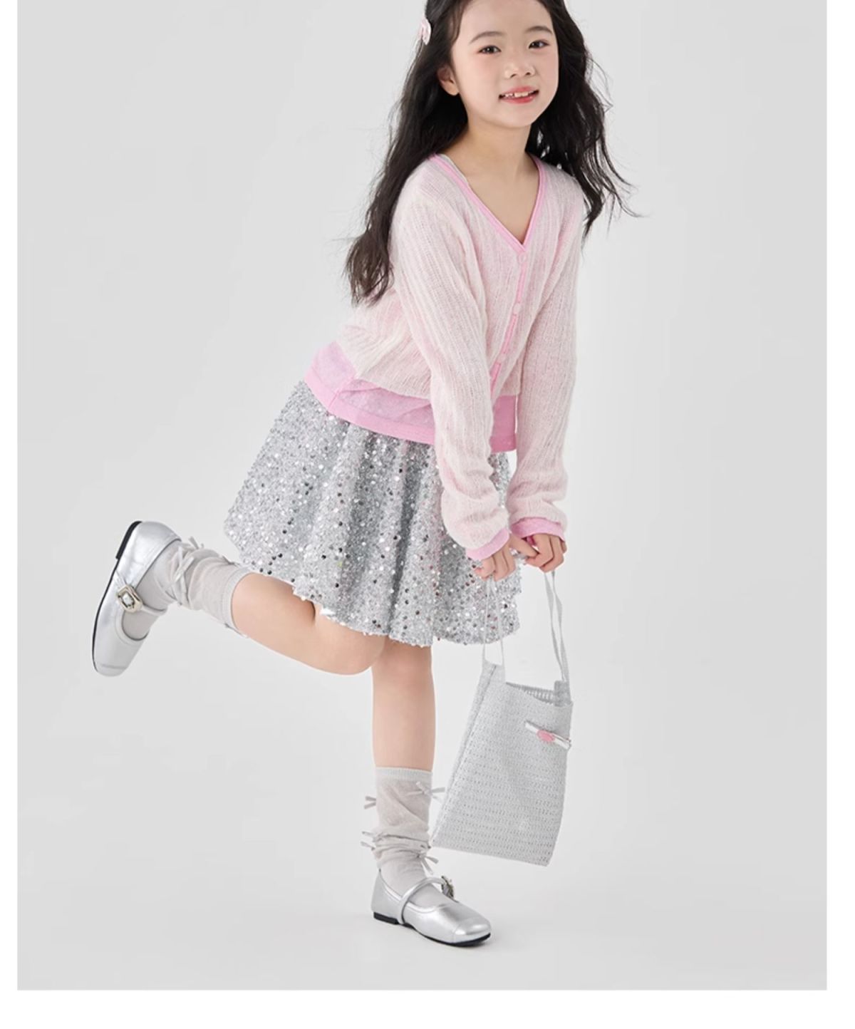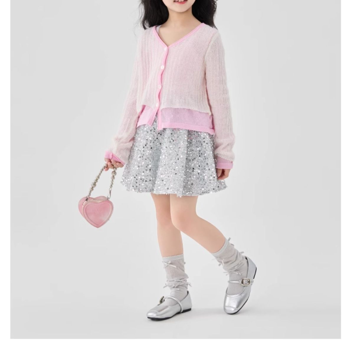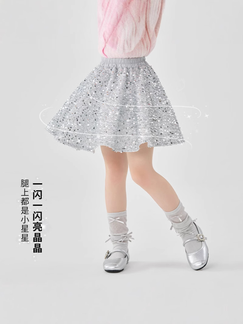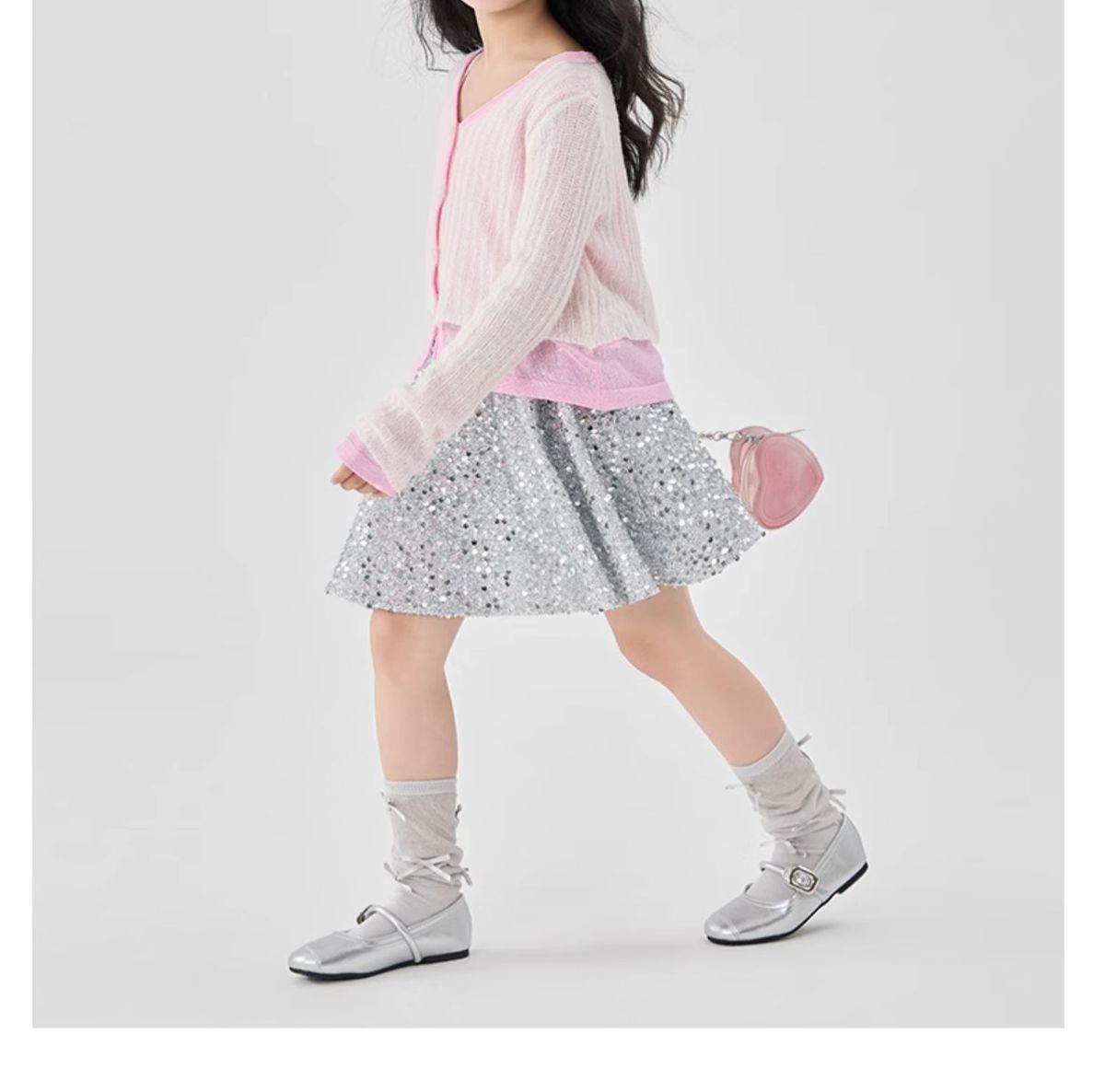 소녀 스커트 여름 스퀸 공주 스커트 어린이 투투 스커트 2025 봄과 가을 어린 소녀의 실버 스커트