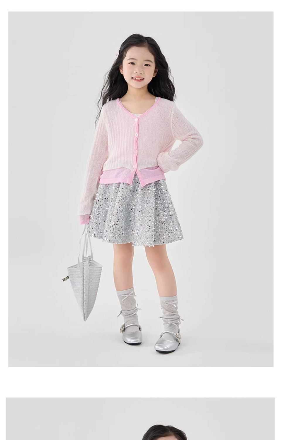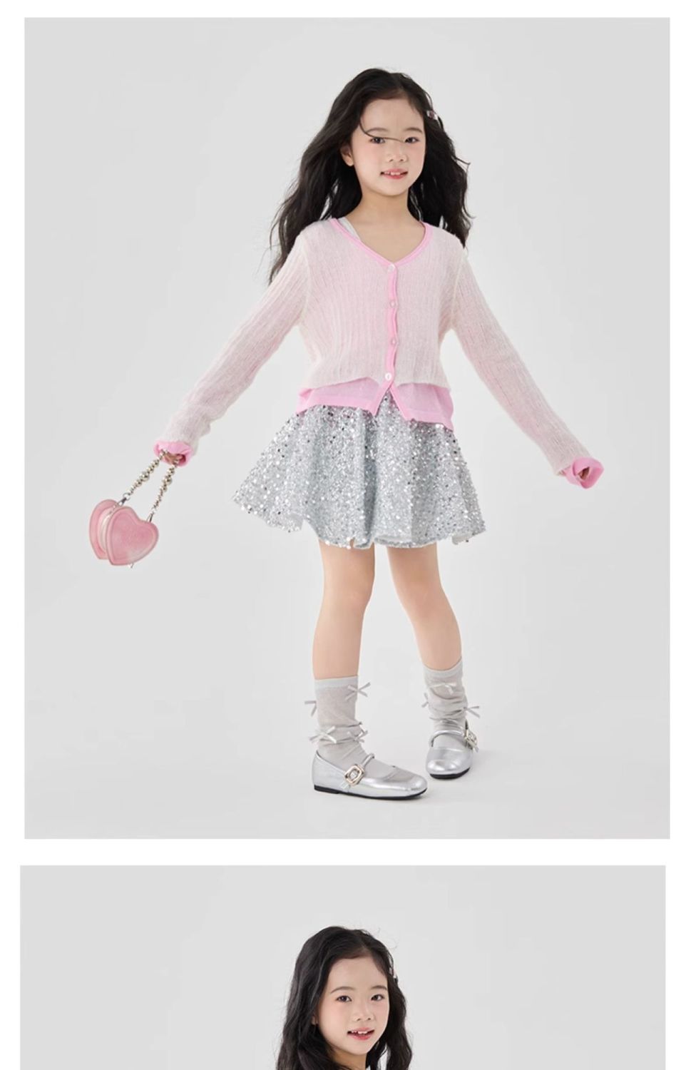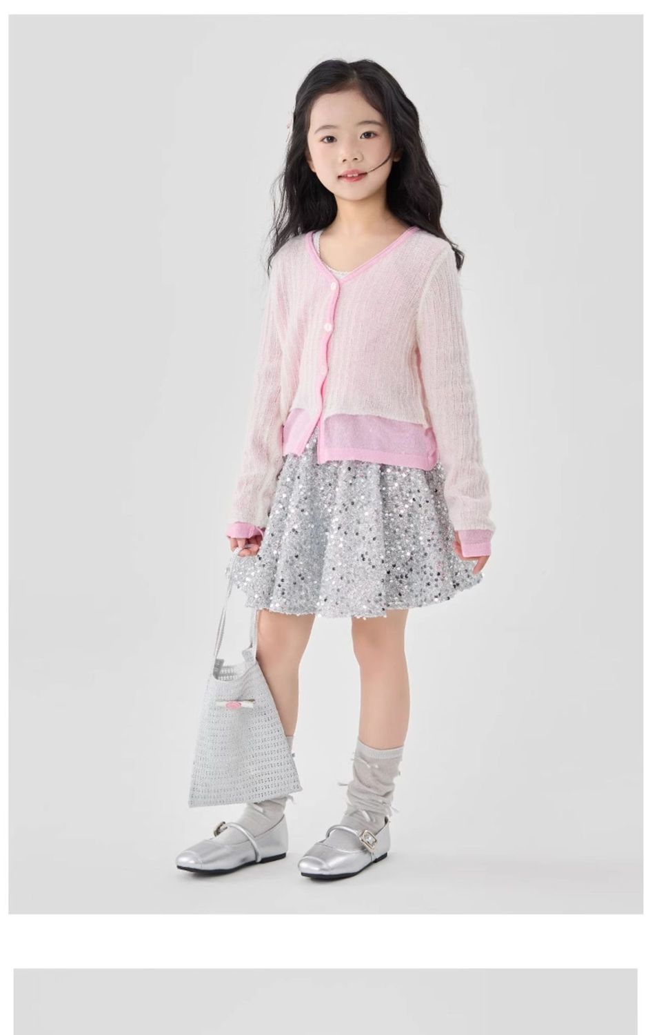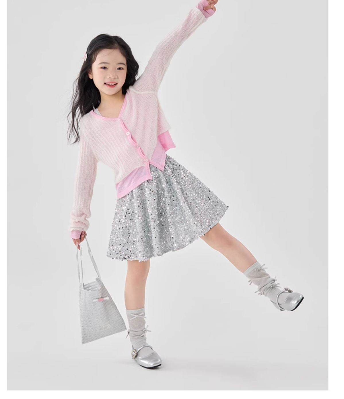소녀 스커트 여름 스퀸 공주 스커트 어린이 투투 스커트 2025 봄과 가을 어린 소녀의 실버 스커트