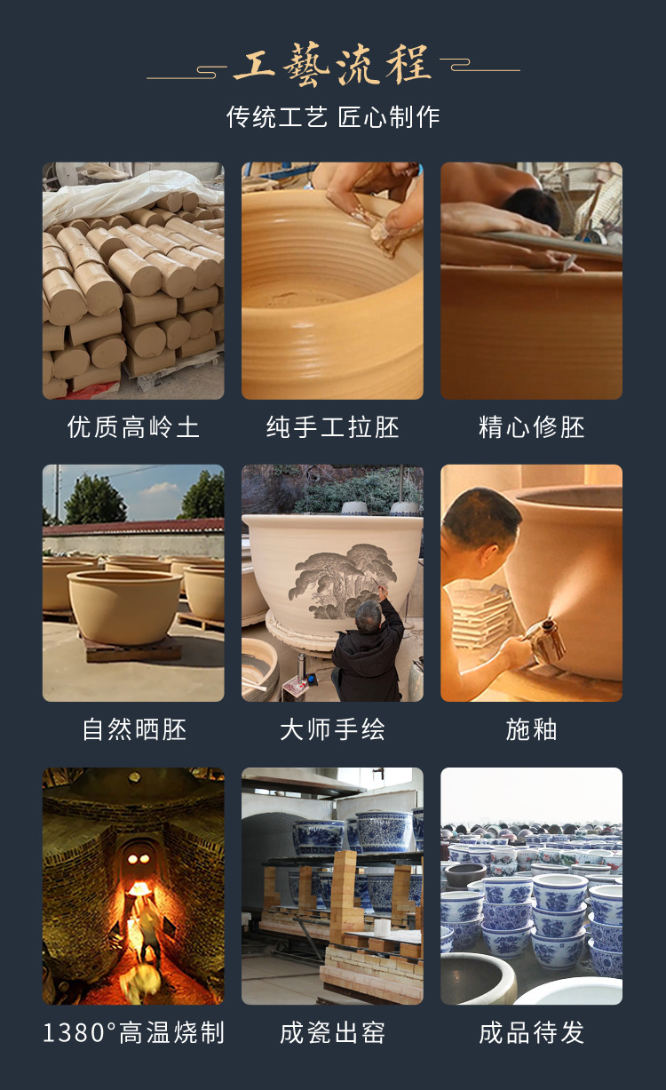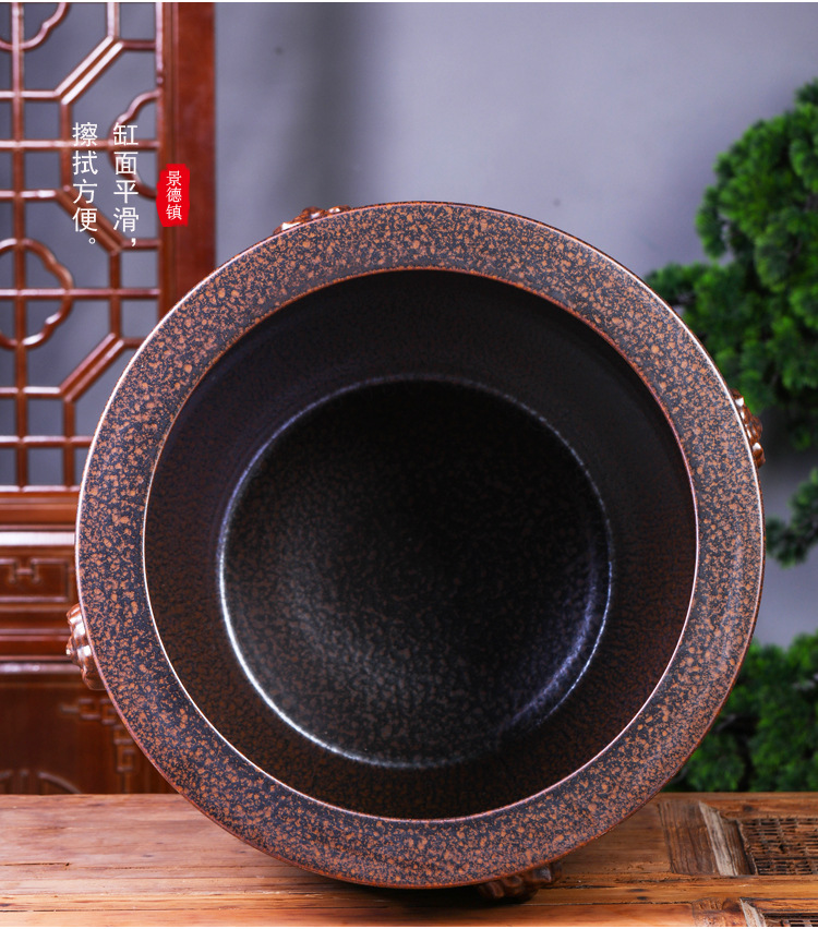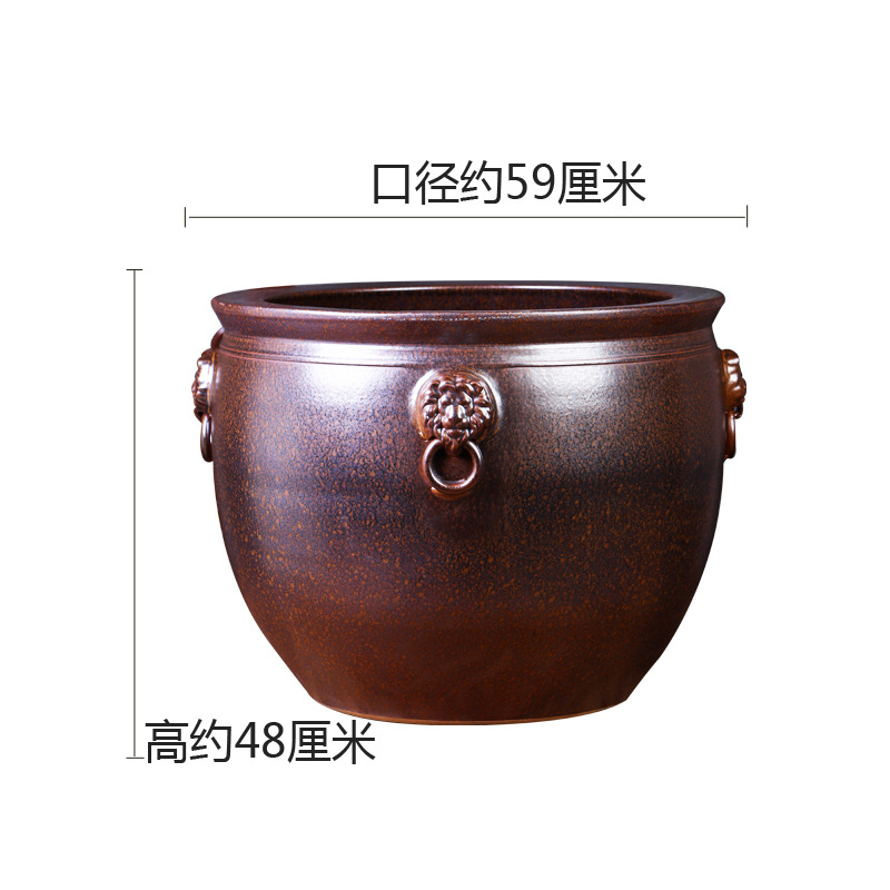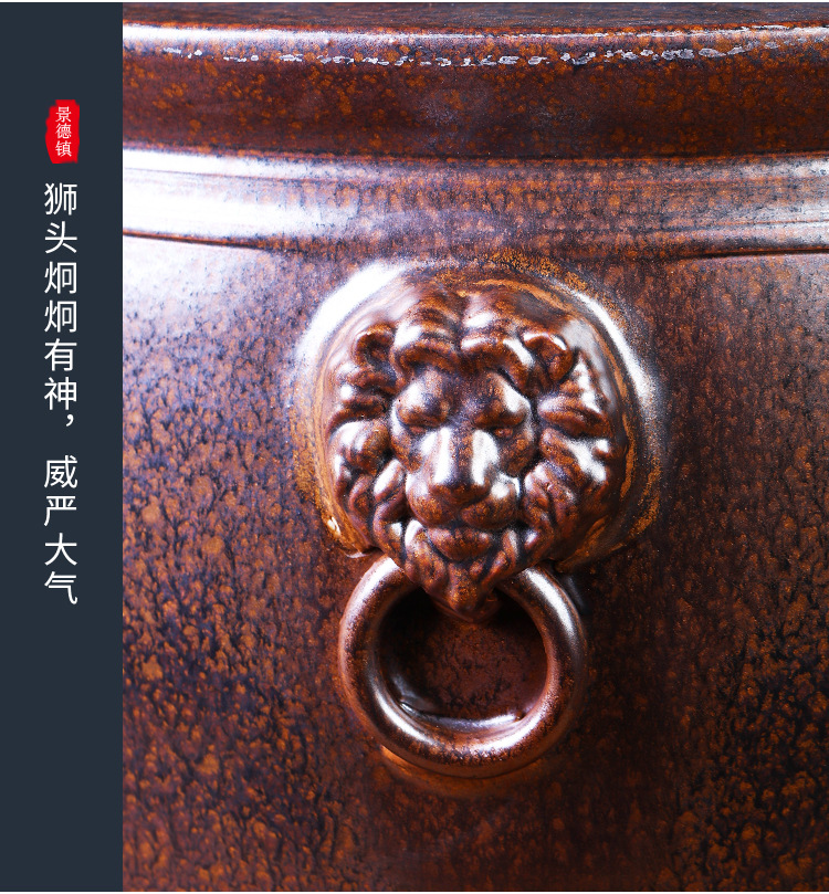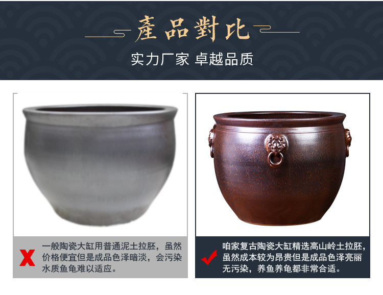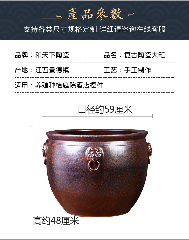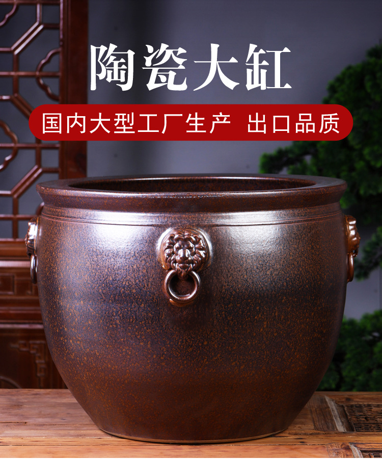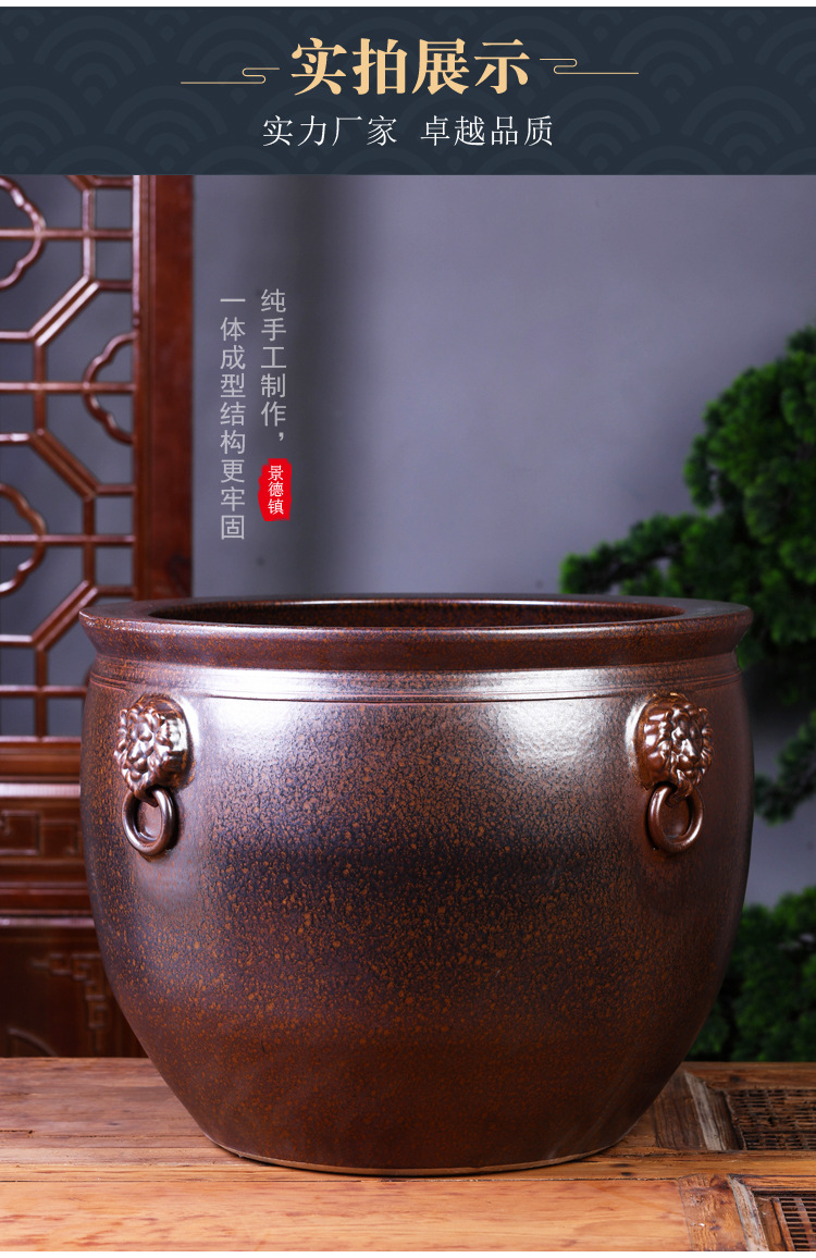 경덕진 도자기 대형 항아리, 앤틱 스타일의 야외 장식품, 큰 배 모양의 사자 귀 모양 수련/연꽃 어항, 정원용 구식 물탱크스토어 가기