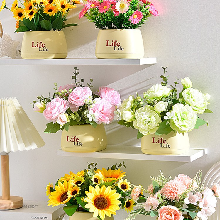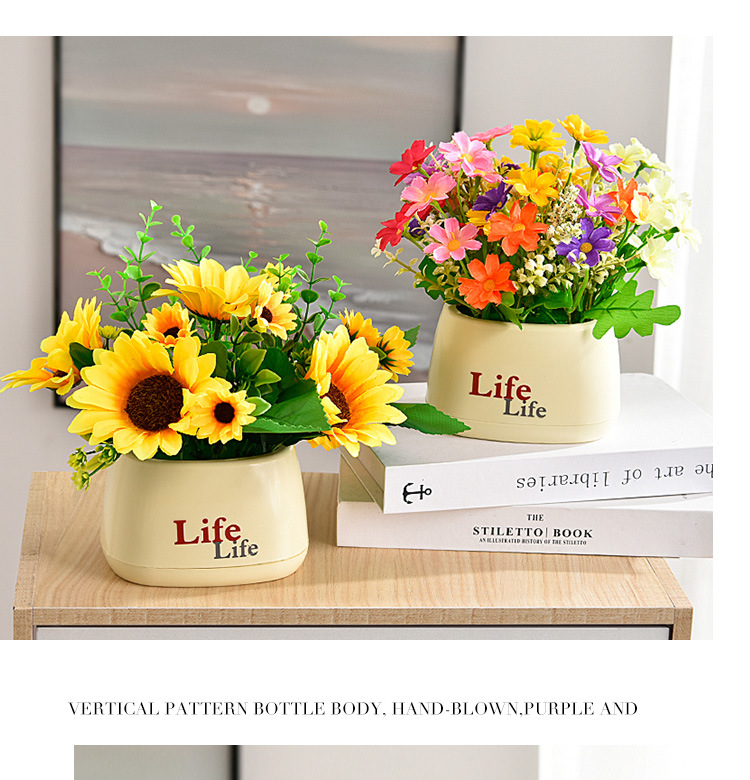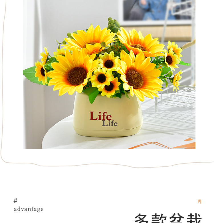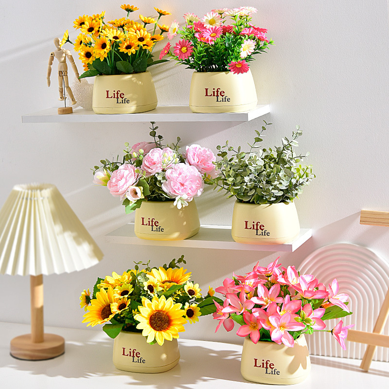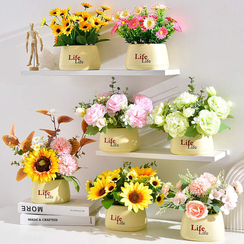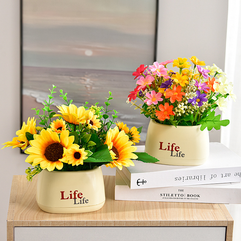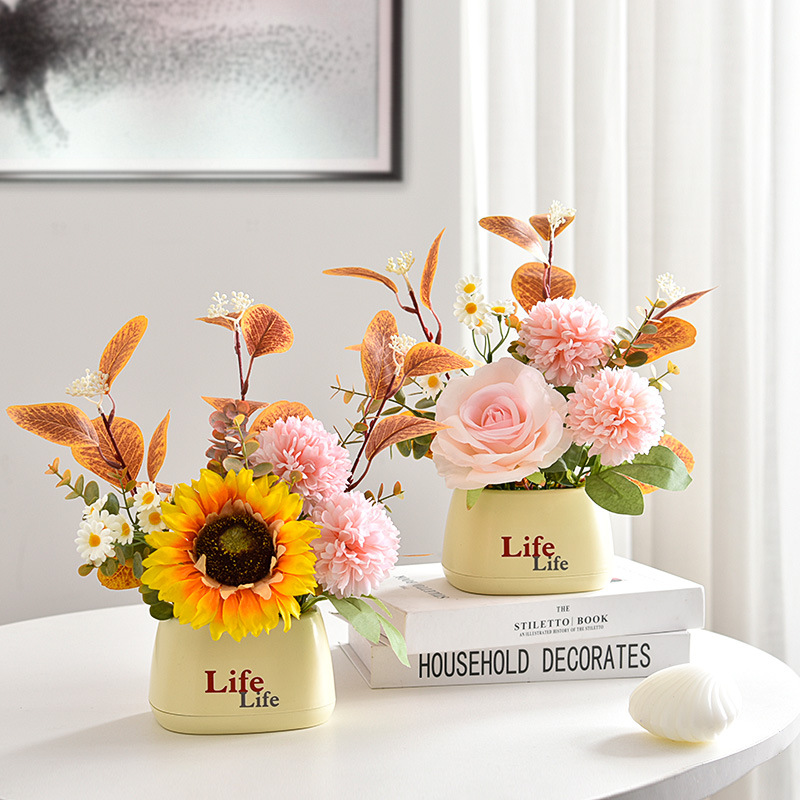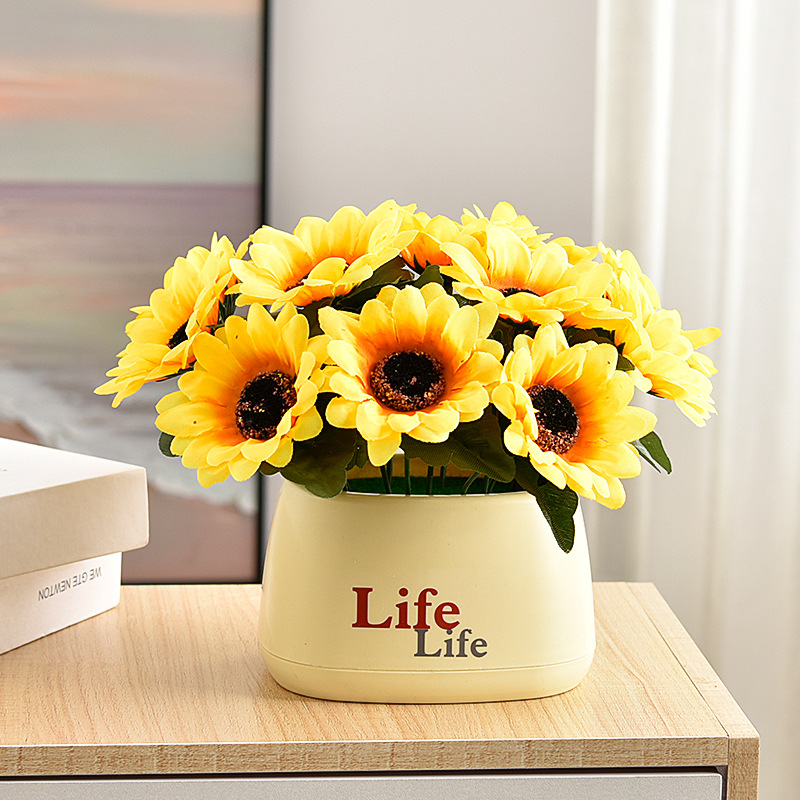 가짜 꽃 꽃 장식 해바라기 꽃꽂이 작은 화분 플라스틱 꽃다발 거실 장식 식탁 녹색 식물 장식품스토어 가기