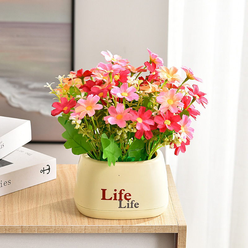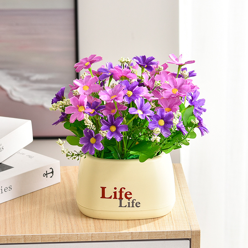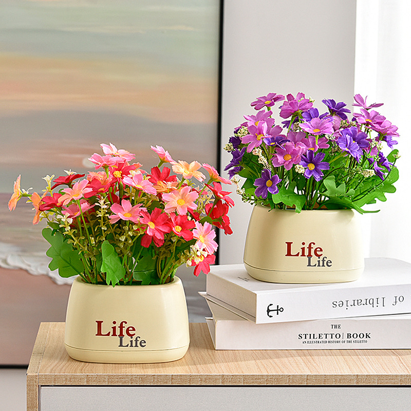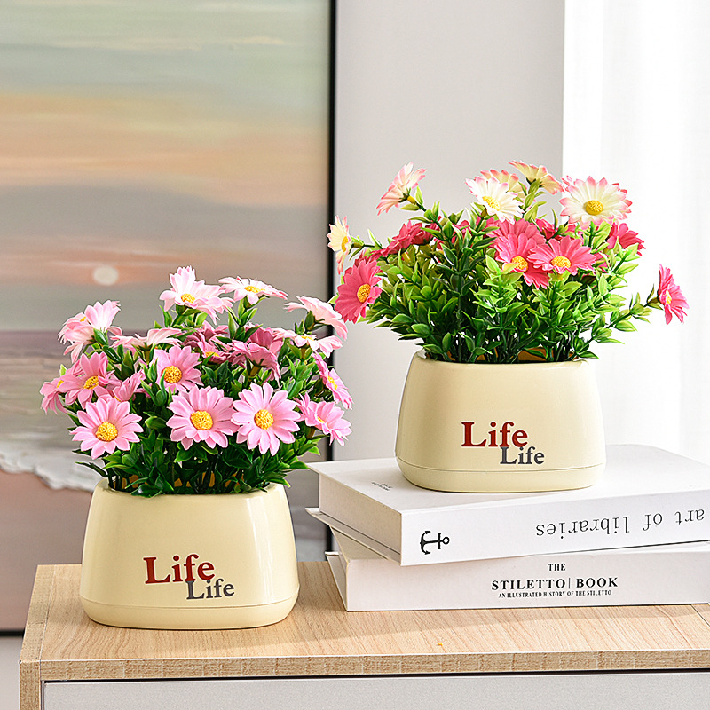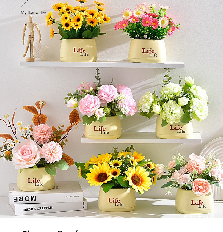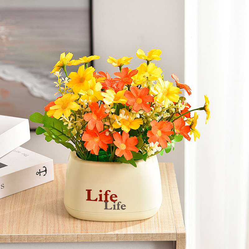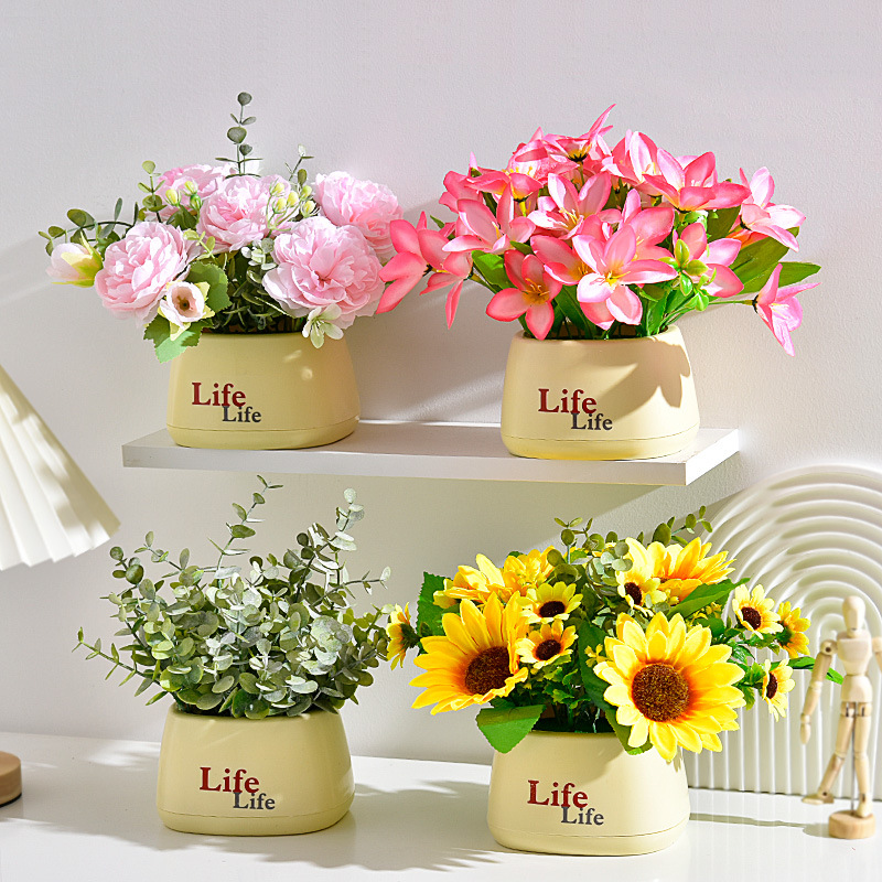 가짜 꽃 꽃 장식 해바라기 꽃꽂이 작은 화분 플라스틱 꽃다발 거실 장식 식탁 녹색 식물 장식품스토어 가기