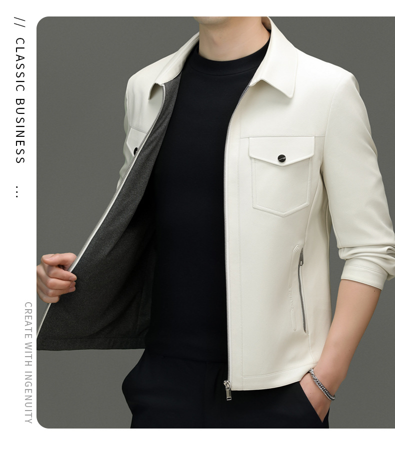 2024 봄 새로운 남성 가죽 의류 젊고 중년 캐주얼 지퍼 옷깃 단색 얇은 코트 남성용 가죽 자켓 트렌디스토어 가기