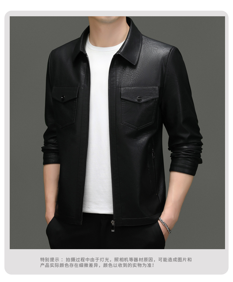 2024 봄 새로운 남성 가죽 의류 젊고 중년 캐주얼 지퍼 옷깃 단색 얇은 코트 남성용 가죽 자켓 트렌디