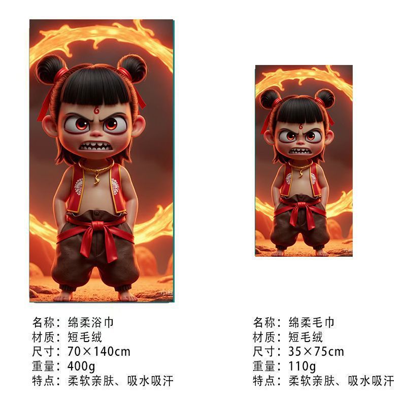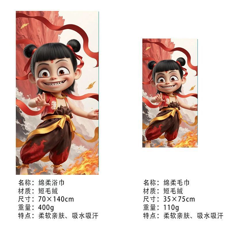 Ao Bing Na Nezha Naohai 타월 Na 차 귀여운 큰 목욕 타월 애니메이션 만화 워시 얼굴 목욕 광장 타월 주변 세트스토어 가기