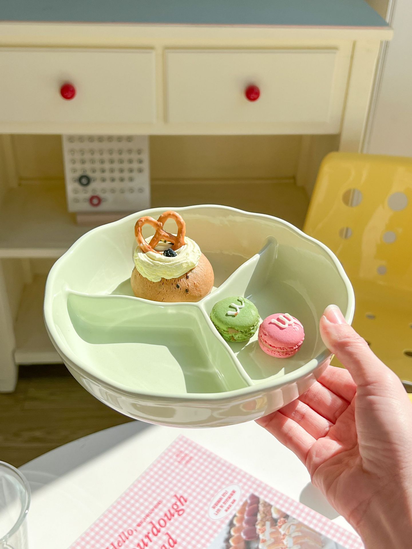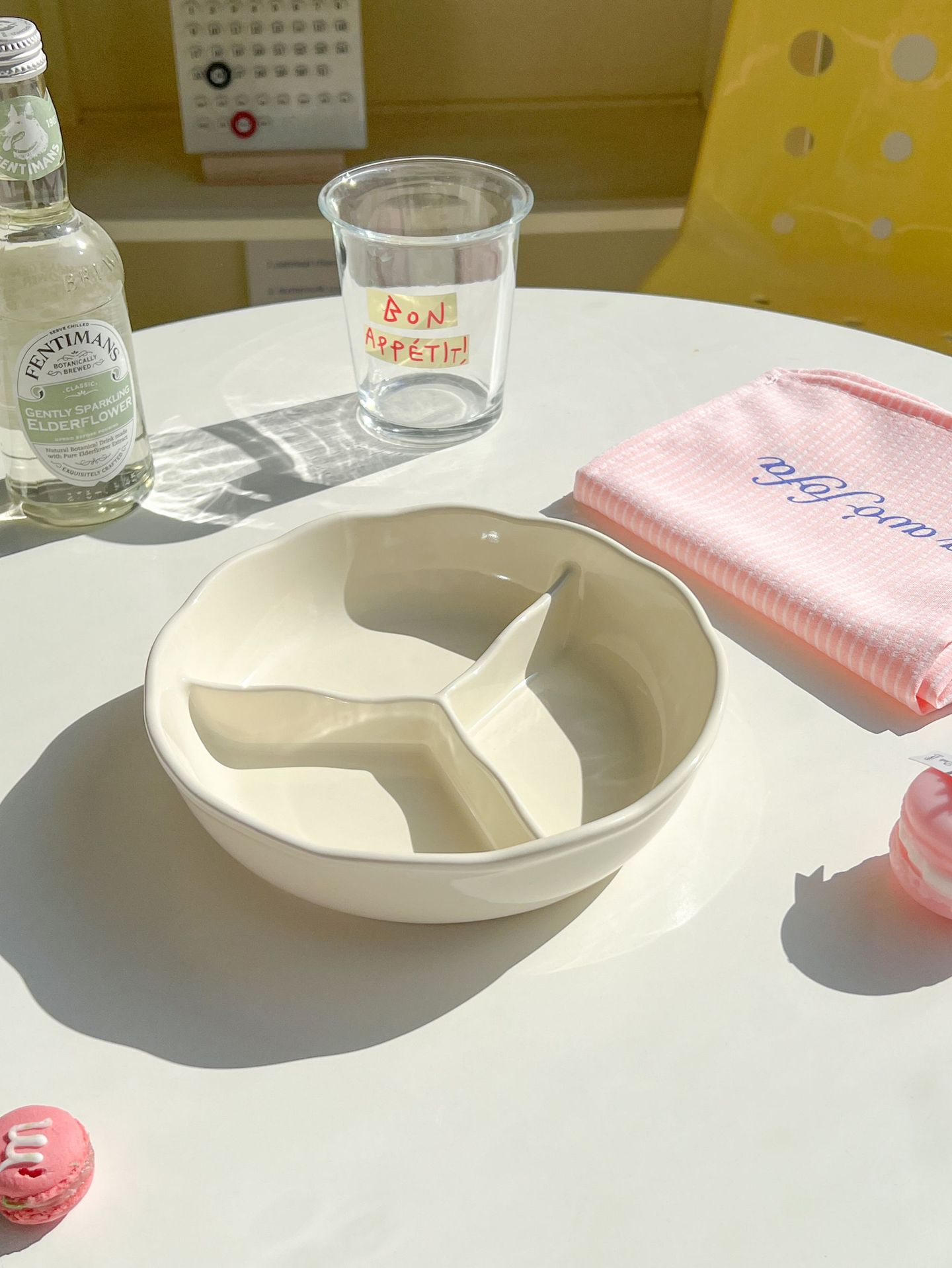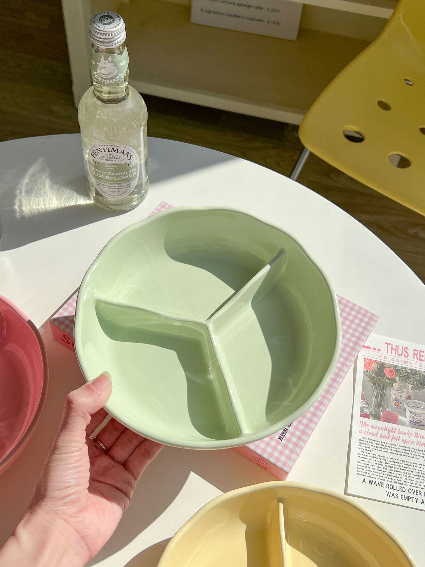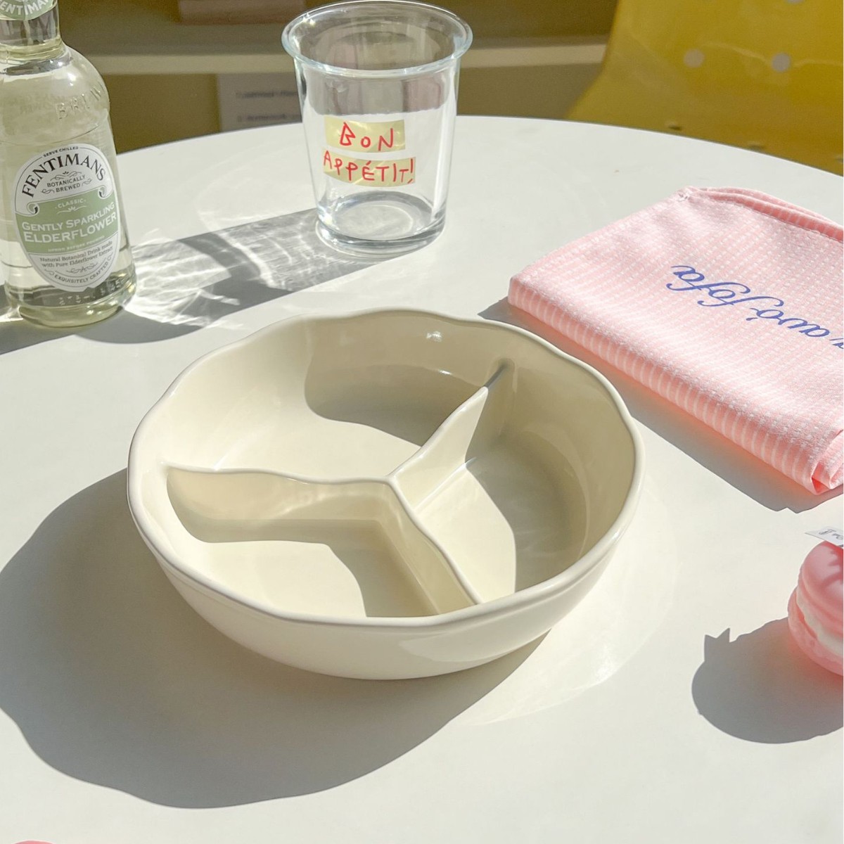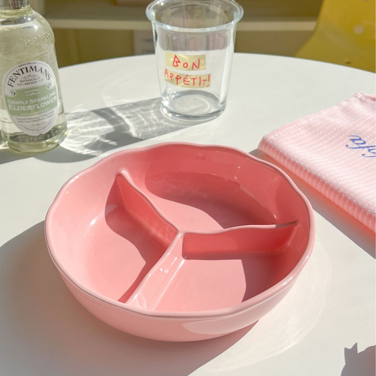 • 꽃무늬 3칸 접시 - 미색