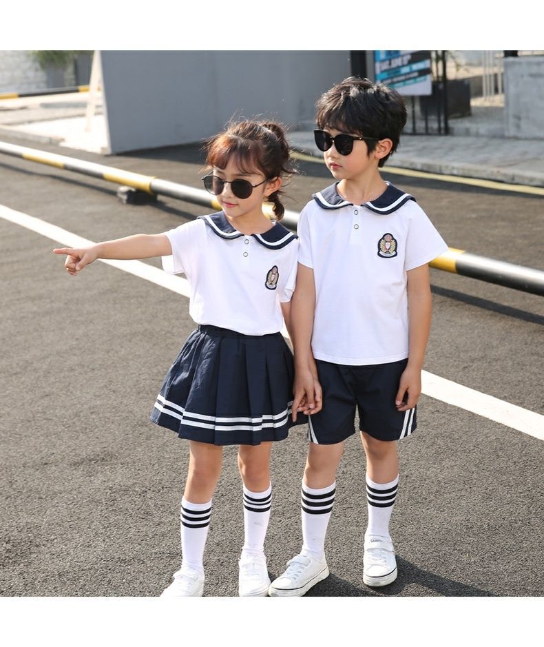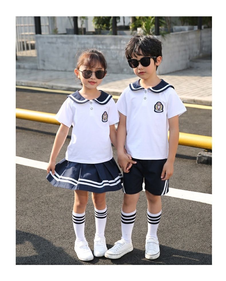 유치원 여름 옷 영국 대학 스타일 초등학교 유니폼 여름 졸업 사진 반팔 면화 어린이 클래스 옷스토어 가기