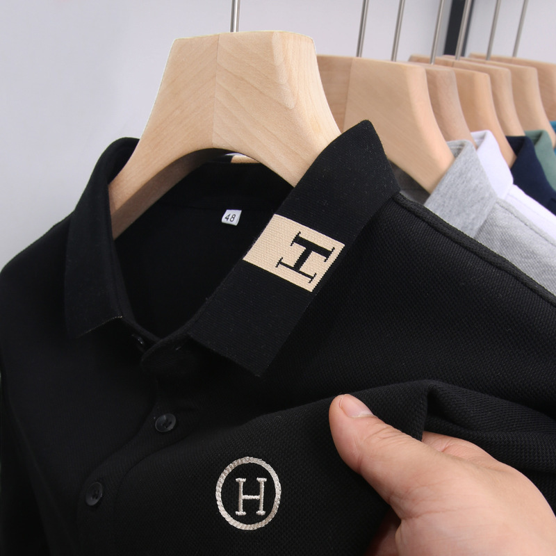 새로운 남성 폴로 셔츠 여름 H 편지 자수 비즈니스 캐주얼 짧은 소매 폴로 셔츠 옷깃 남성 티셔츠 도매