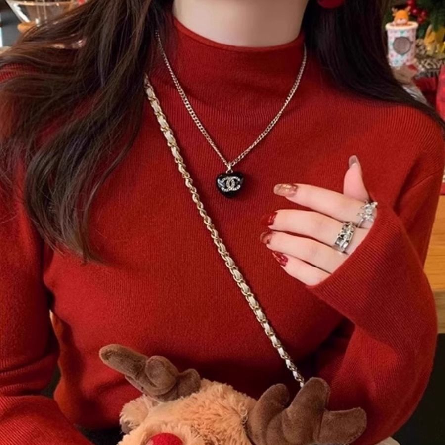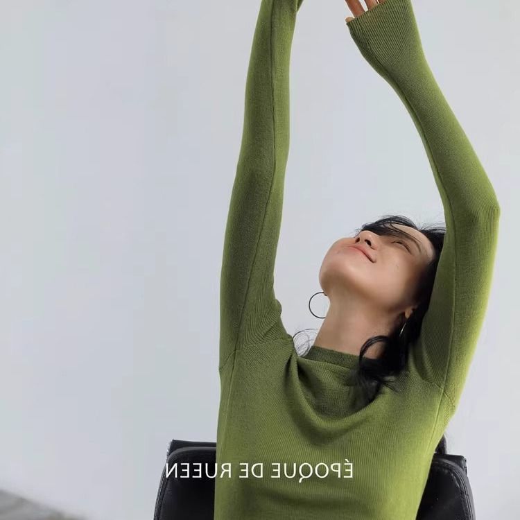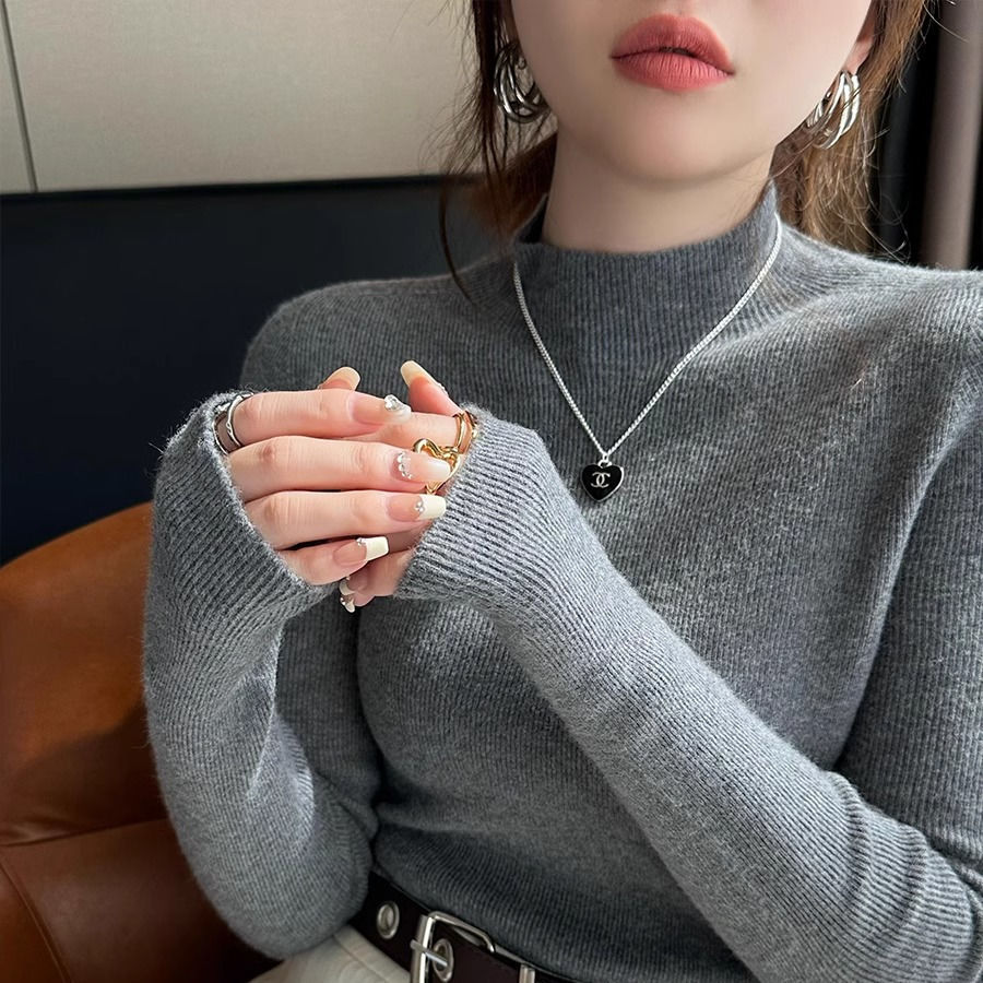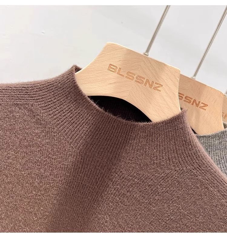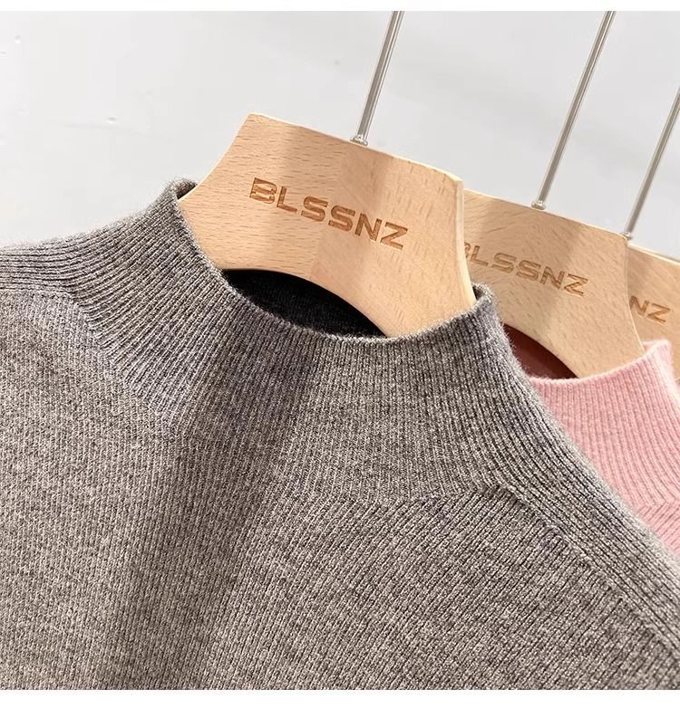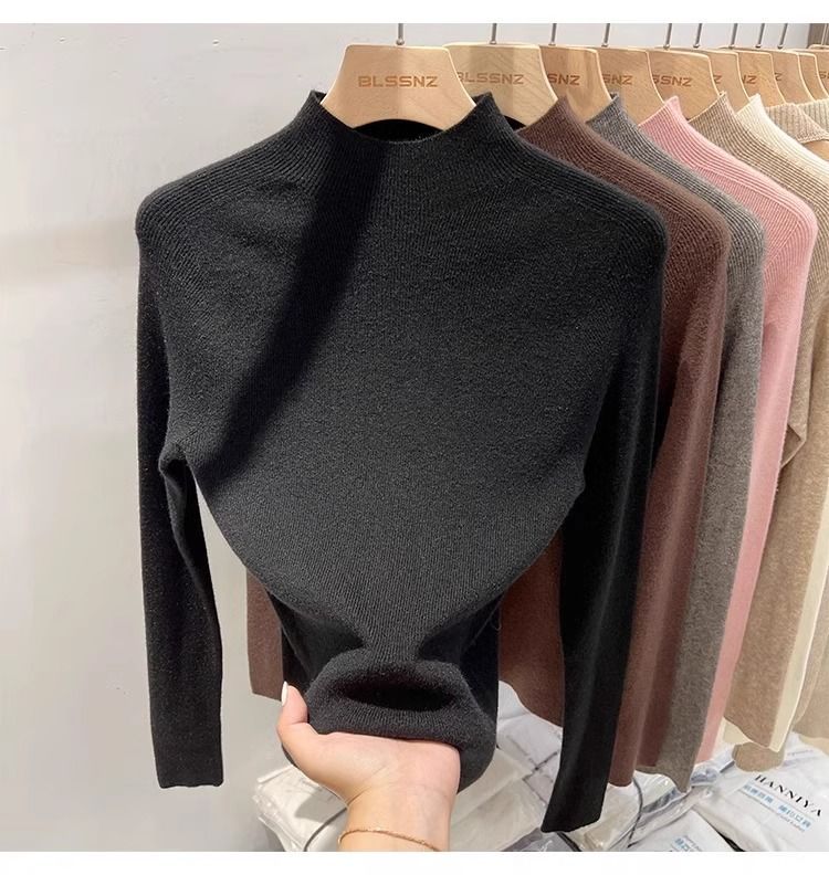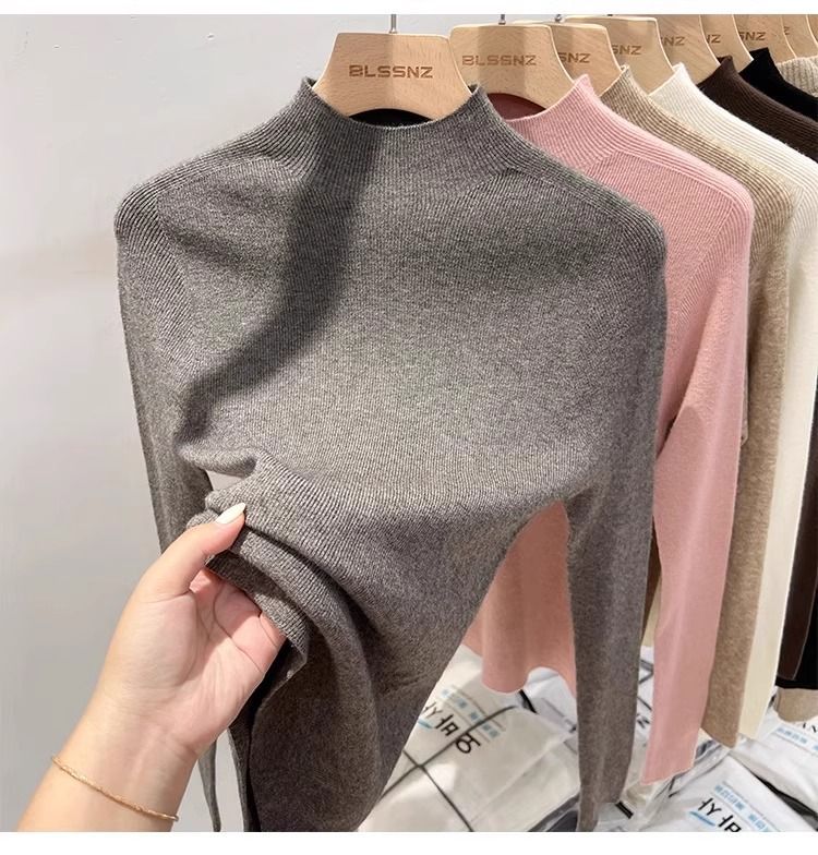 2025 봄과 가을 반 높이 칼라 화이트 니트베이스 셔츠 여성용 슬림 핏 소프트 왁스 슬림 핏 우아한 미드 넥 스웨터 트렌디스토어 가기